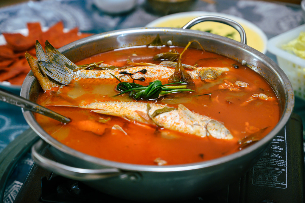 随着船只的靠岸,行程也算告一段落了。看着时间还来得及,便在去机场路上选了一家餐厅吃过晚饭再走,我们吃了当地的特色美食,布依族酸笋牛肉火锅,很多人说如果你喜欢螺蛳粉,那也一定会对酸笋欲罢不能。