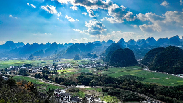 可以说万峰林,是来到贵州兴义以后必不可少的一个打卡点,自从徐霞客在三百多年前发现了万峰林,这里便成为网红景点直到今天。“天下山峰何其多,惟有此处峰成林”,徐霞客用这句诗诠释了万峰林奇特的自然景观,每一座峰都各具特色,既独立成趣,又与其他峰林相辅相成。在半山腰一路上行驶,有多个观景点位可以下车拍照,沿途只见万峰成林依次绵延,为我们呈现了如此雄奇浩瀚的景观。一月第一批油菜花已经绽放,田园风光景致尽现,农田、布依人家、炊烟与万峰林,多么和谐美好的人世间啊。