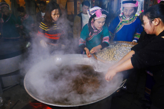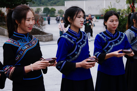 离开陂鼐,中午抵达大寨村,正赶上这里的拼猪团sha猪宴,布依族人穿着节日的盛装迎接我们到来,又准备了他们最隆重的长桌sha猪宴,文化与美食的结合必不可少。