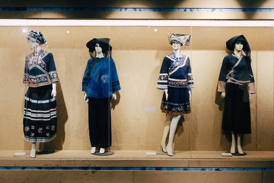我怀着一颗好奇心,走进了册亨布依博物馆,布依族由古代僚人演变而来,以农业为主,展馆里展示了大量生产工具的实物,通过这些实物就能感受到布依族人的勤劳与朴实。但我最感兴趣的还是布依族服饰,布依族服饰多为青、蓝、白等色,男人多包头巾、穿对襟短衣或大襟长衫及长裤,女人更讲究头饰,婚前婚后都不一样,有些支系以短衣长裙为主,有些支系是短衣长裤为主,但都会在衣服上绣上精美的图案,尤其各色绣花围腰,朴素无华,典雅大方。展馆里还有关于布依族人独特的音乐、舞蹈和戏曲方面的介绍,如果有机会能够亲耳所闻,亲眼所见就太完美啦。