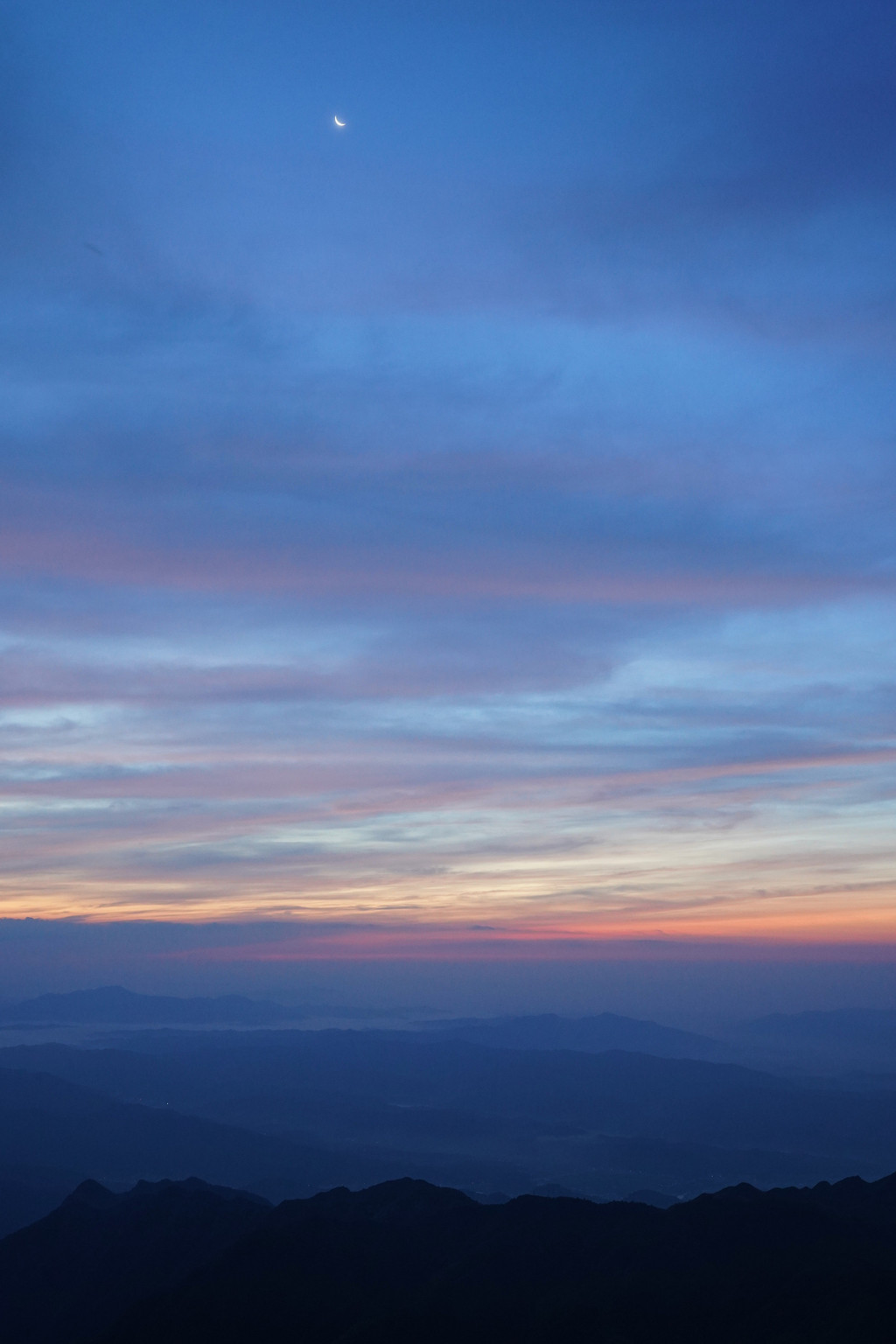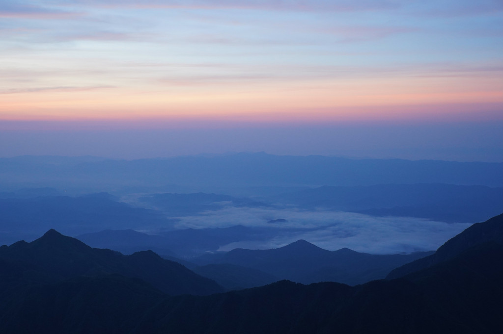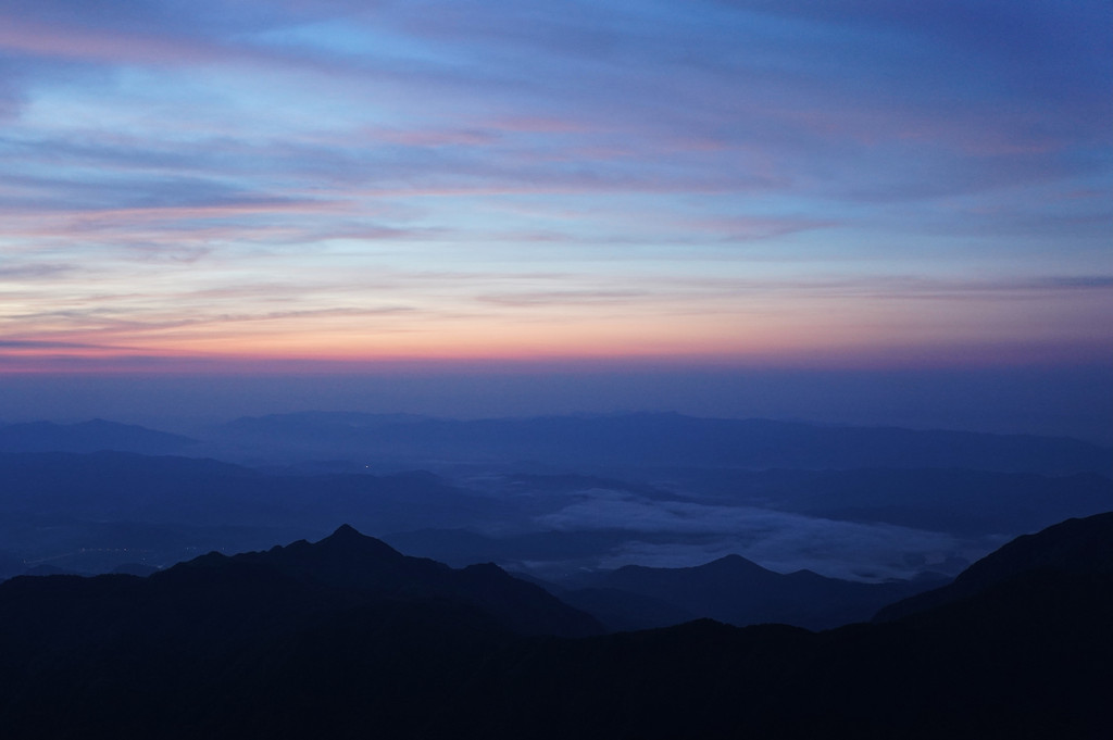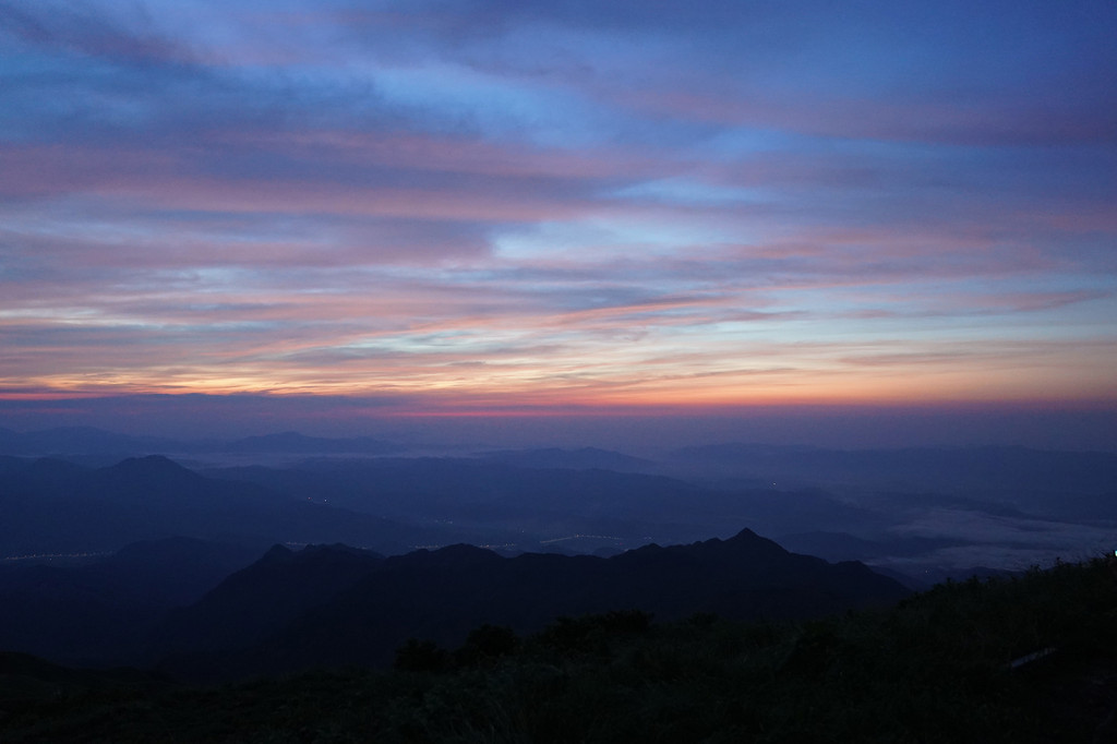 5:05-5:20 是比较理想的夏季观日出时间点,运气还不错,看到了漂亮的蓝紫梦幻色与娇羞的日出。