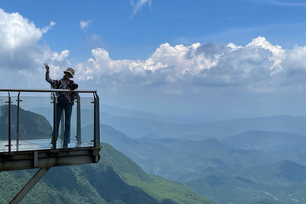 到达紫极宫后,我的路线设计是继续乘坐二级索道(金顶索道),但这个不是立马能坐的,需徒步经过许愿桥、福星谷栈道、玻璃眺台,这段风景也不错,大概徒步1小时后,可乘坐二级索道到金顶。