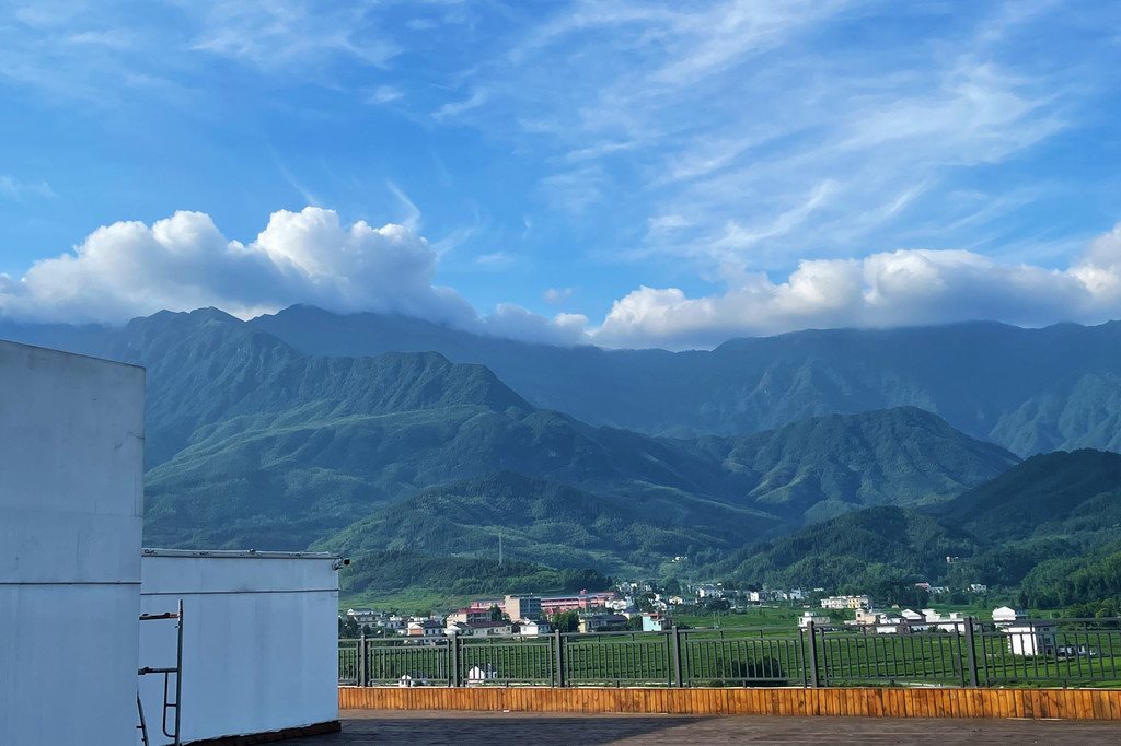 晚餐还是在客栈定好的,老板很用心,前一晚室内看的《庐山恋》,这一晚在观景露台,天色还很亮。