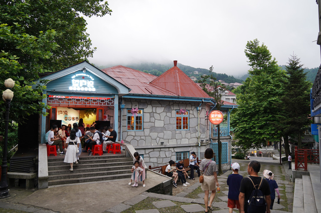 在牯岭正街散个步,小镇非常热闹,去海拔最高的肯德基打个卡,此刻云雾烟雨已散,俯瞰整个九江市、滔滔长江,山川河流尽收眼底。