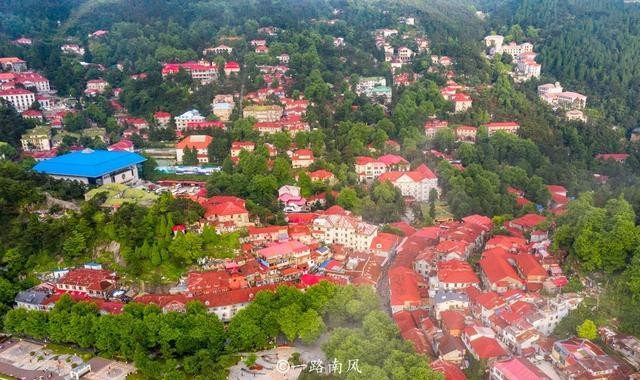 据说牯岭镇的西式别墅多达上千栋,站在街心公园还可以眺望九江古城,山上的普通民居也是彩色的铁皮屋顶,它们在青草和绿树的掩映下就像一个个风姿绰约的绝色佳人。