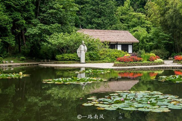 如琴湖的西侧是著名的花径,白居易当年在农历四月欣赏完美景之后,挥笔写下了《题大林寺桃花》,寥寥14个字将意境烘托得高雅脱俗,特别喜欢末尾的“长恨春归无觅处,不知转入此中来”一句。