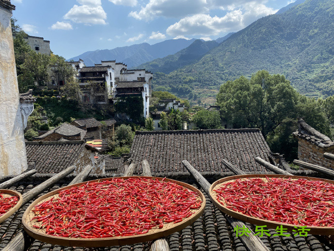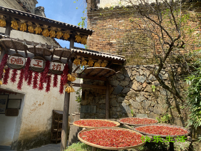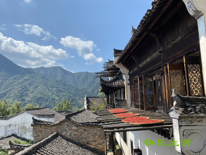 从晒工坊窗口可以俯瞰整个村子,白墙、青瓦、彩色的果实,一片秋收的美景。