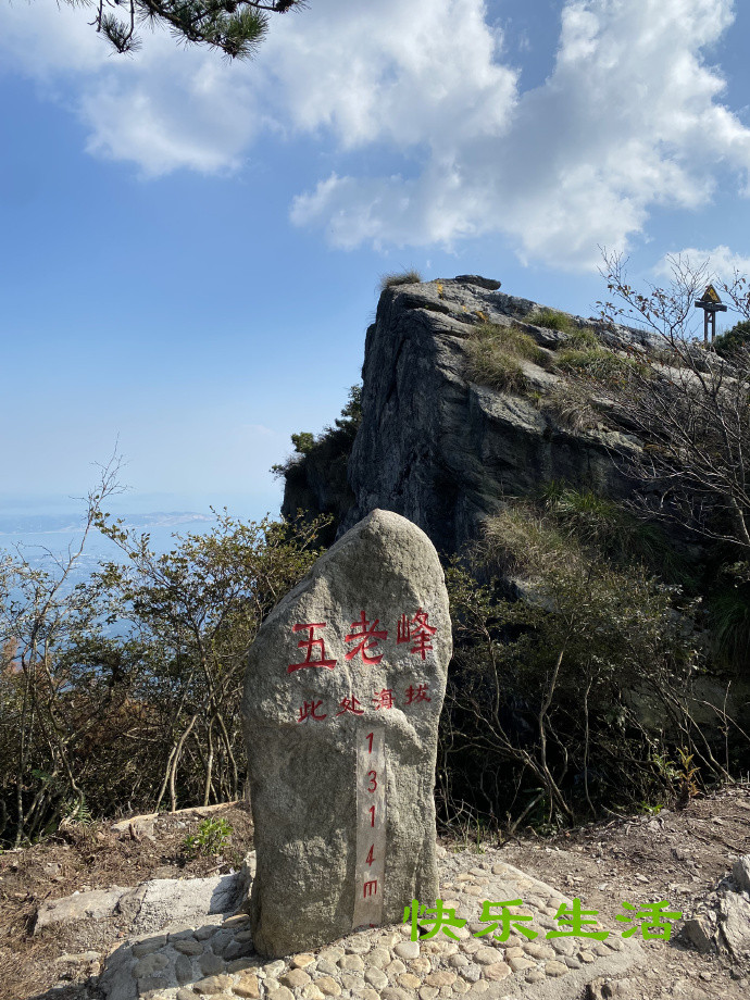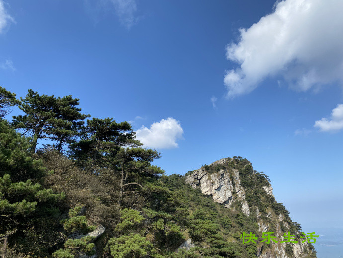 从三叠泉出来,直奔五老峰。五老峰是五座连续的山峰,远看像五位老人并排而坐。我们的本意是想找个角度远观一下五老峰即可,并不想爬山的,可我们沿着一条岔路的指示,一路披荆斩棘、历尽千辛万苦,最终发现自己竟然站在了五老峰的顶端