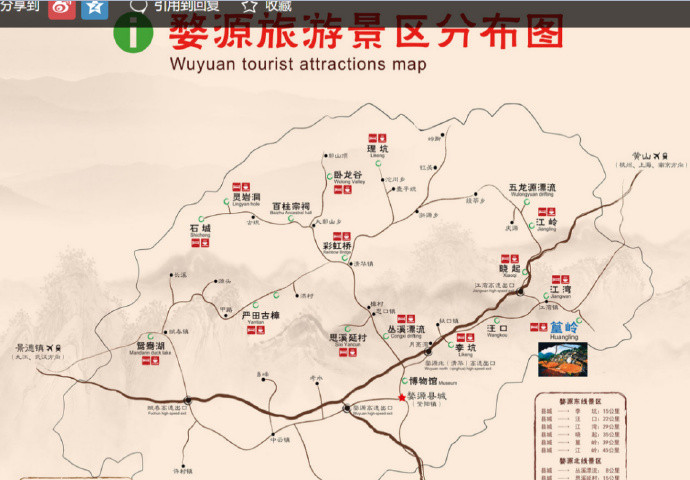 先来张网上下载的婺源旅游景点图,可以对各个景区的位置有个大致的了解: