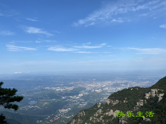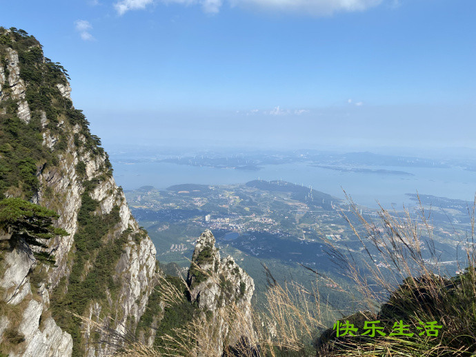 从五老峰山顶远眺山脚下的九江市和鄱阳湖。