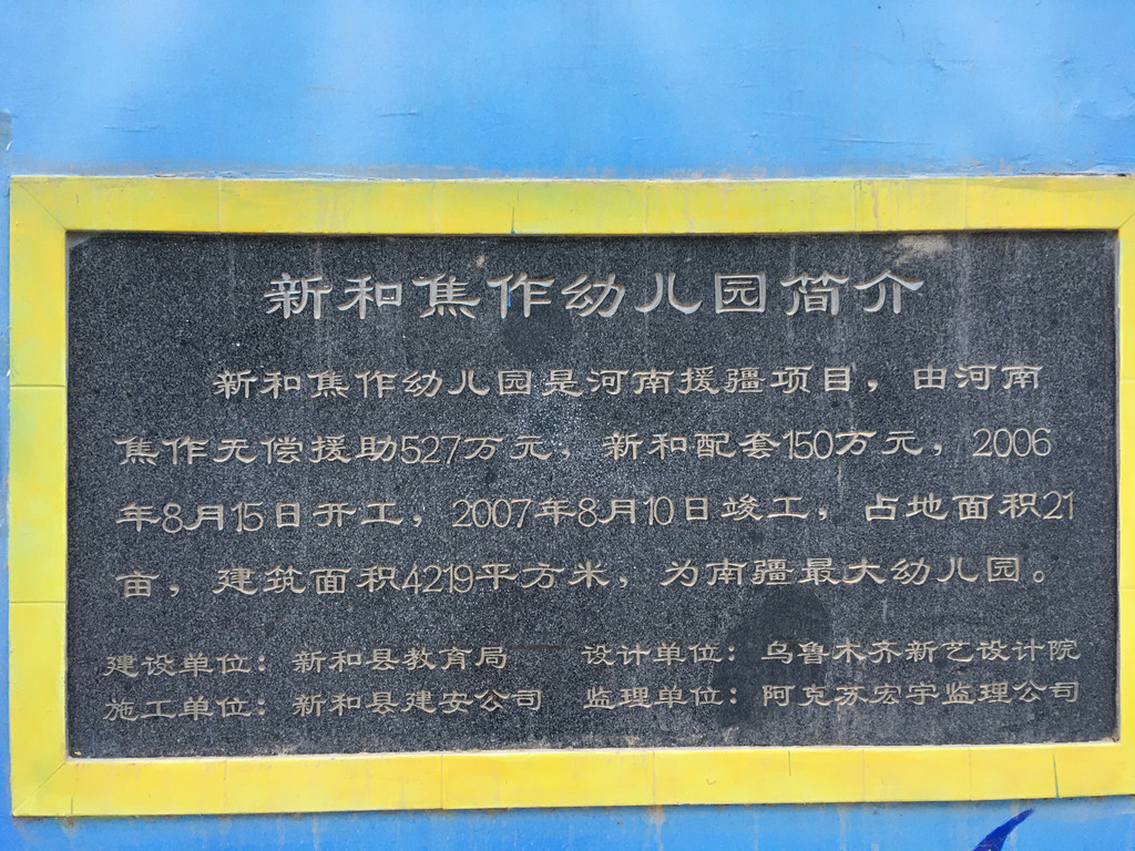 此前是河南焦作在援建新和县。2010年援疆调整后河南今援建哈密了。
