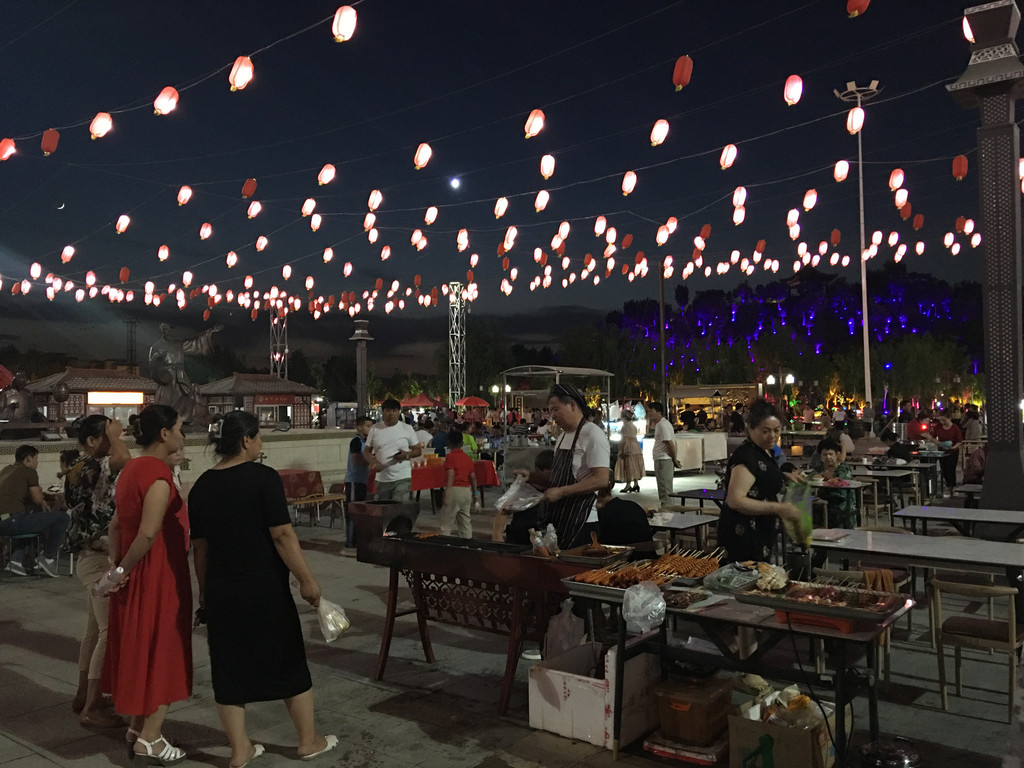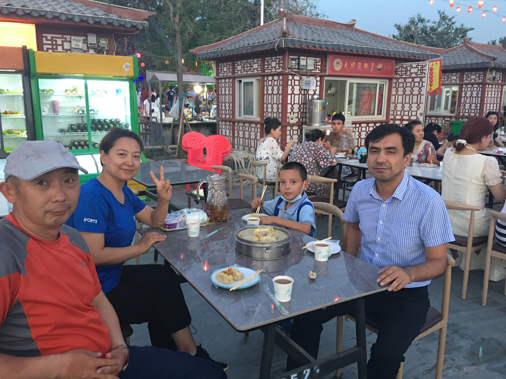 他们四人搭车,我步行,晚去唐安西都护府文化体验中心吃饭、看演出。与一对维族夫妻、儿子一起吃饭,相谈甚欢。天热了,晩饭不做每天都来吃,儿子去找同伴玩耍,家长并不跟随,不担心孩子走失。他比着手势,吃到嘴里、脖子以下,才是自己的,有钱就花,活在当下。他说,抖音、快手的传播,也让维族女孩谈婚论嫁时关注房子、存款了。