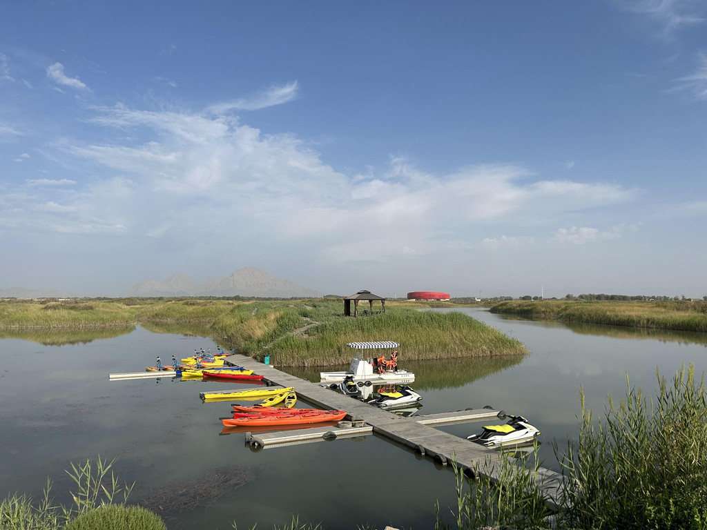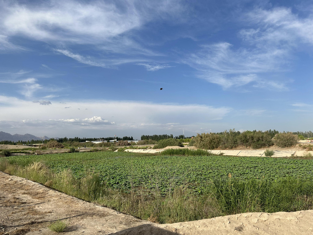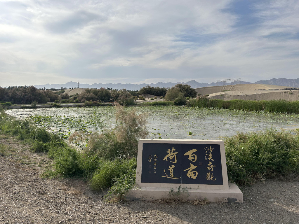 让我感到不可思议的,沙漠中的绿洲,种上了荷花-为了发展旅游业,不计成本和代价。