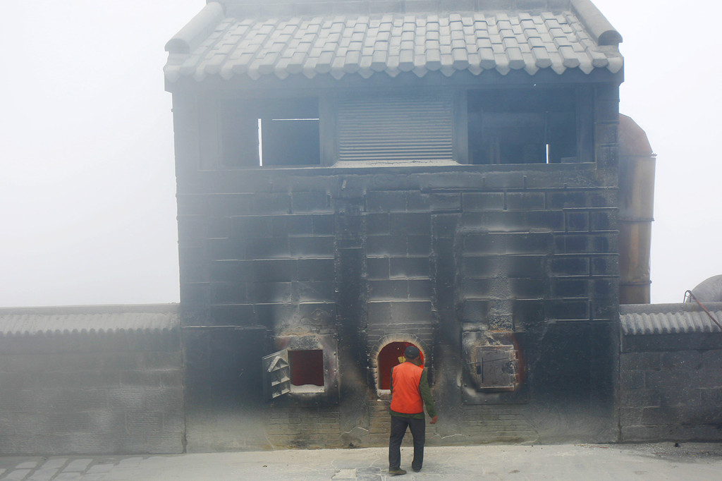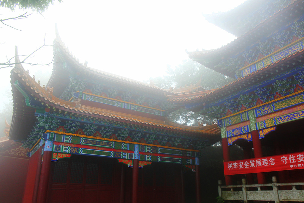 今天的衡山大雾弥漫,能见度不足十米,好不容易爬上祝融峰,但见这里香火鼎盛,山顶的焚烧炉里,工作人员把香客带上来的草纸成捆成捆地扔入炉内,周围空气中四处弥漫着烟火味。