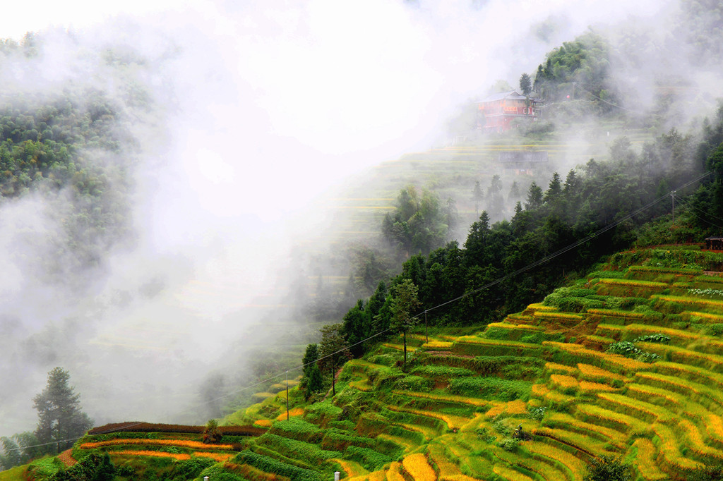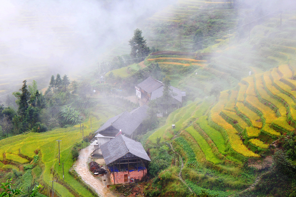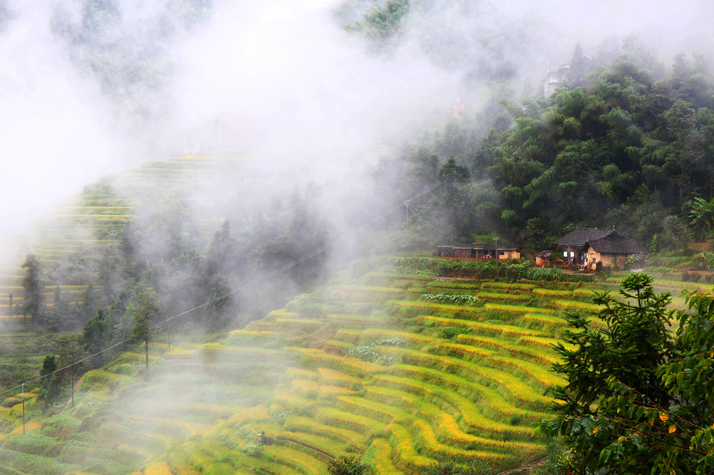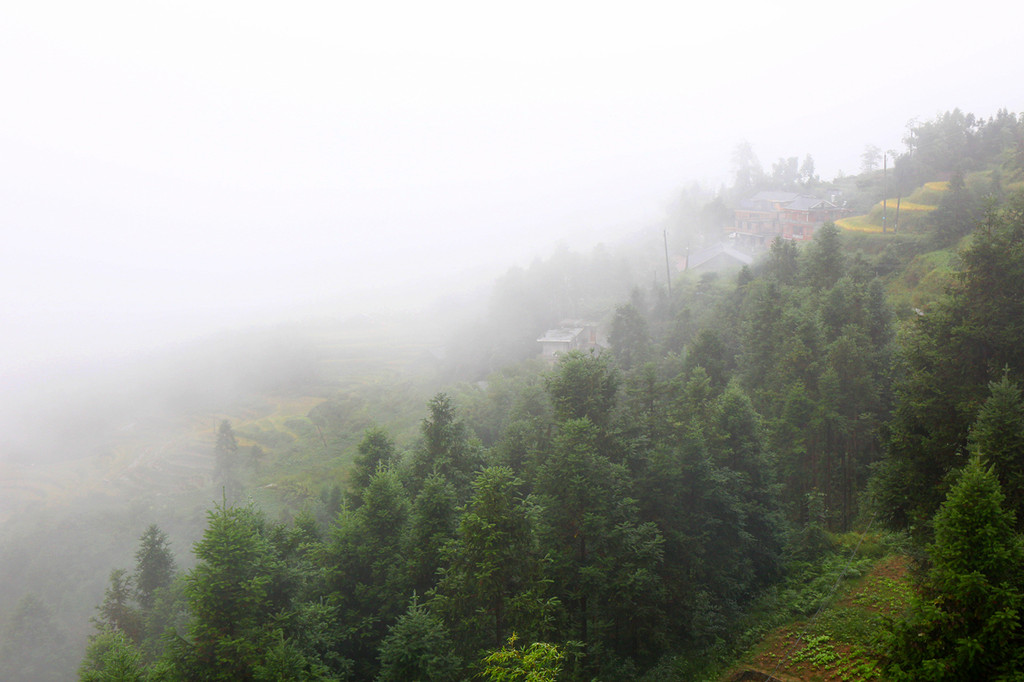 从崇木凼出来后,我们冒雨赶往紫鹊界梯田。