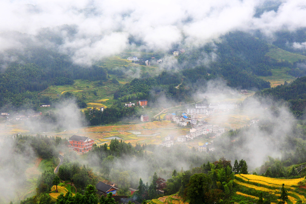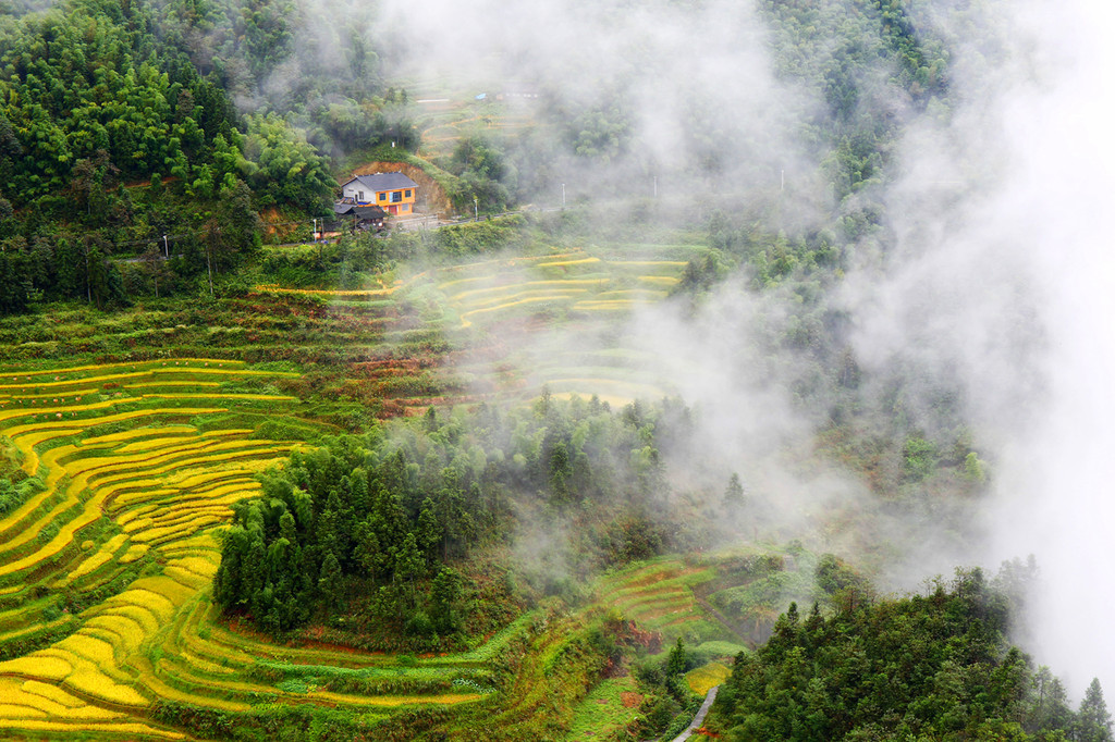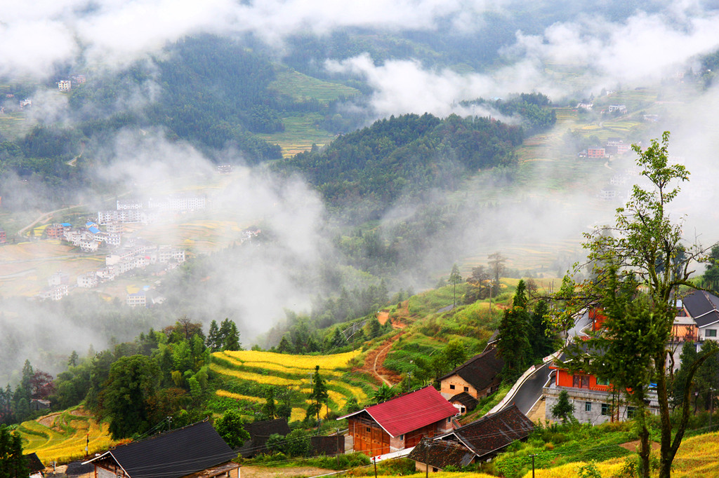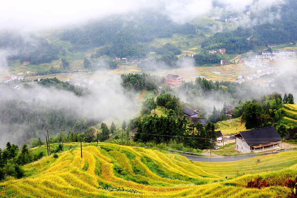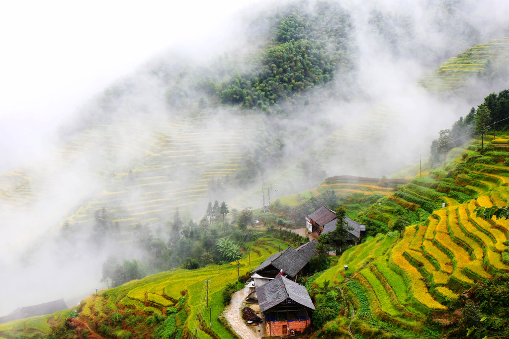从崇木凼出来后,我们冒雨赶往紫鹊界梯田。