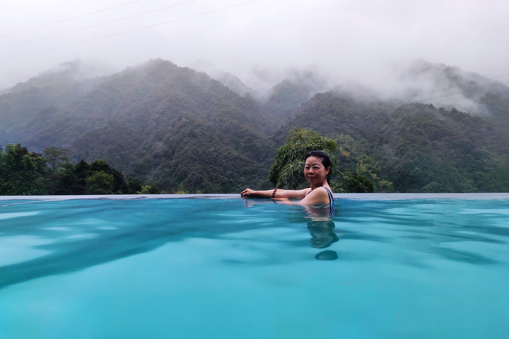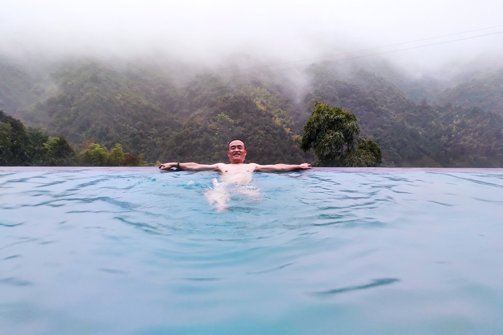 这里因为疫情的原因,室内部分没有开放,但是我们最最期待的无边泳池,只有周六、周日两天开放,因为今天是周六,我们正好赶上了。