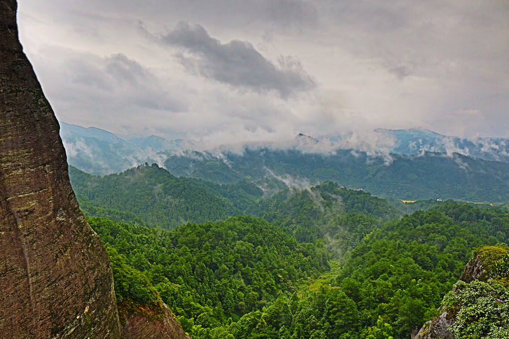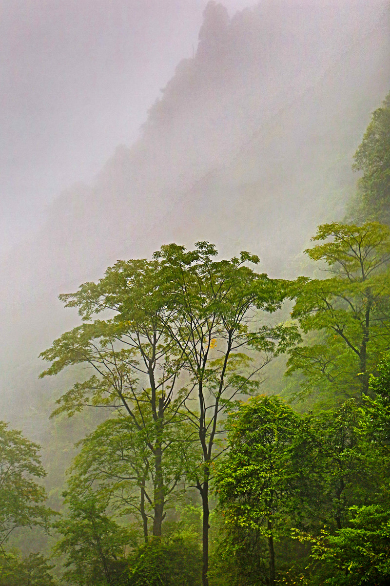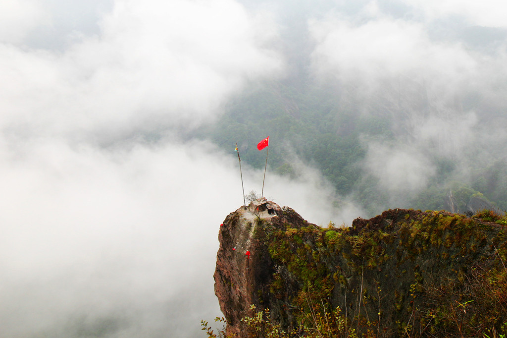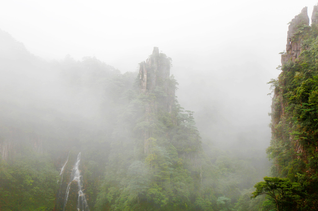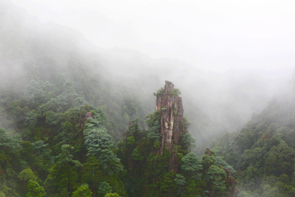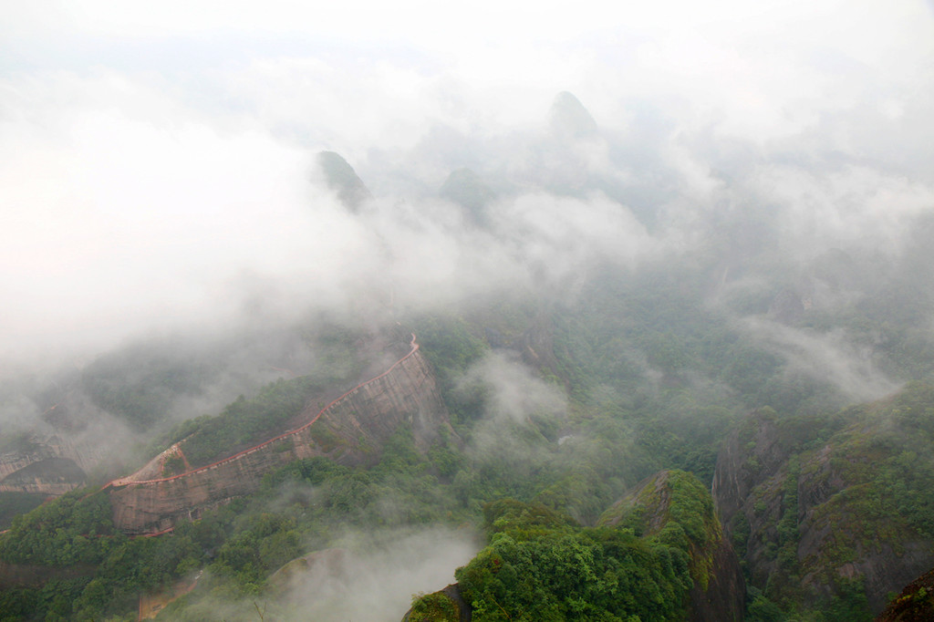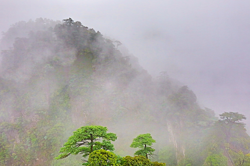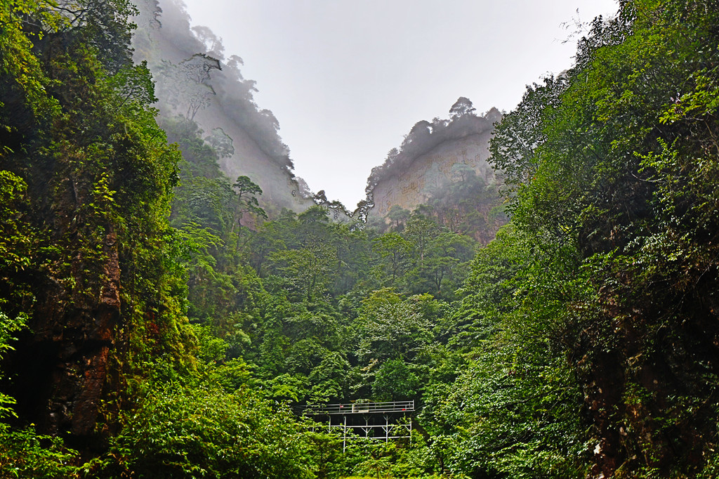 失望有多深,接下来的惊喜就有多高。在将军寨景区,起先也是雾气迷蒙,几乎什么也看不见,可是走着走着,雾气短时间消散,给我们欣赏了片刻的美景之后,就又关起了雾门。