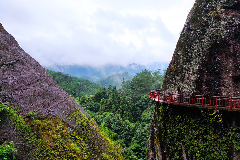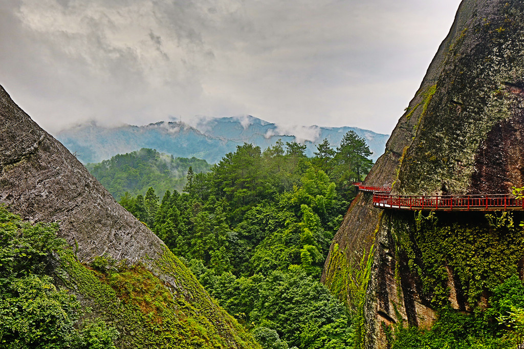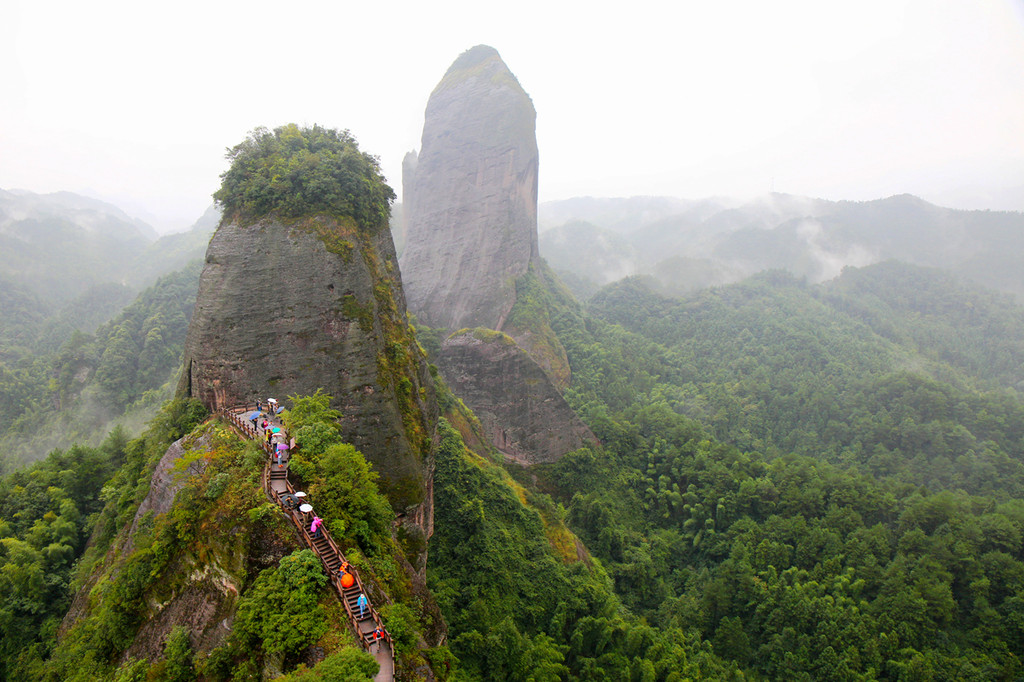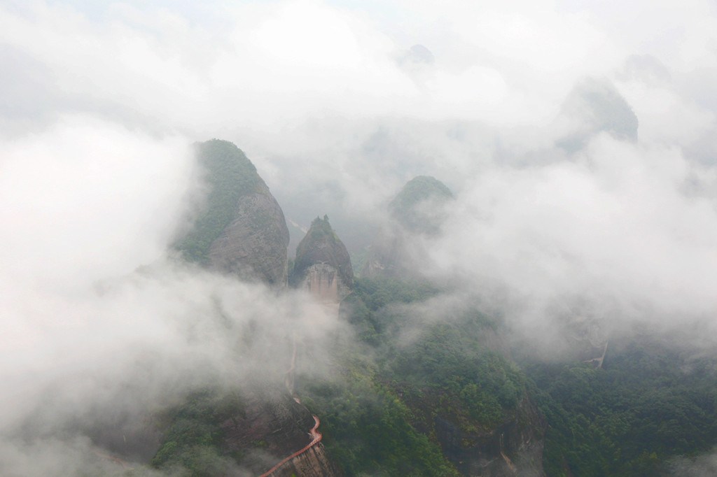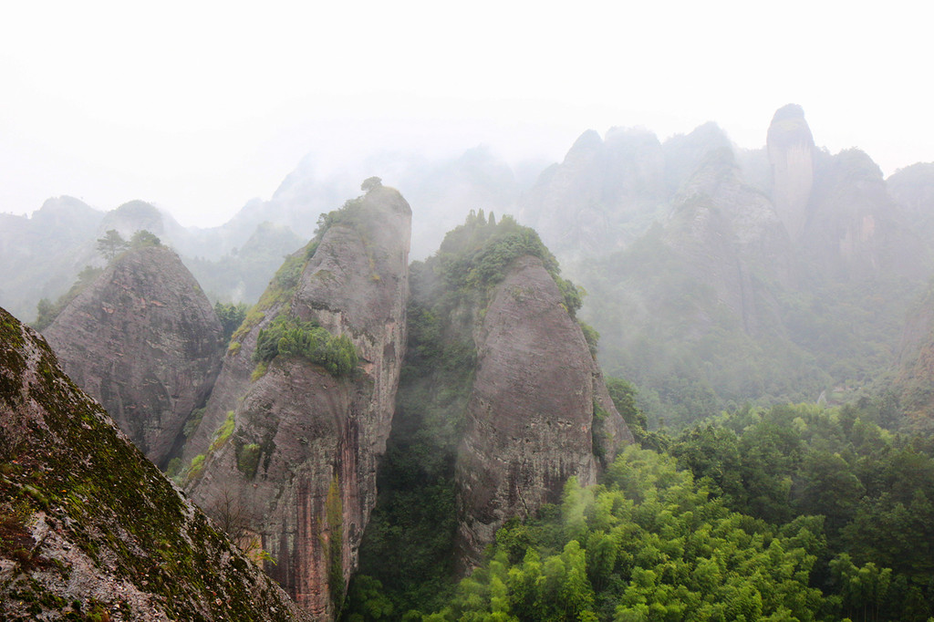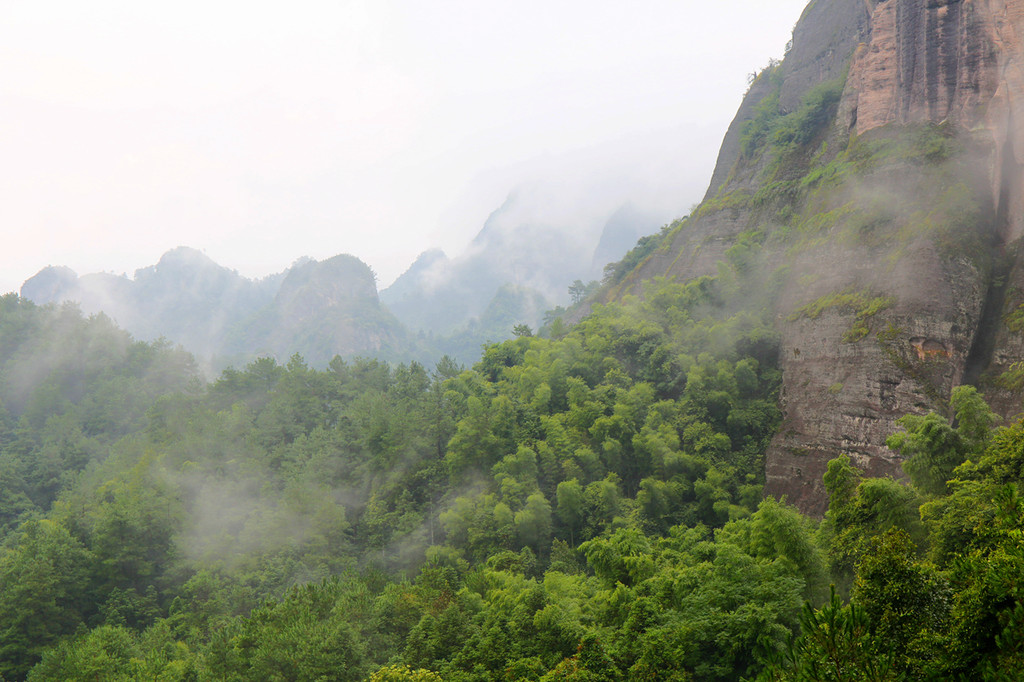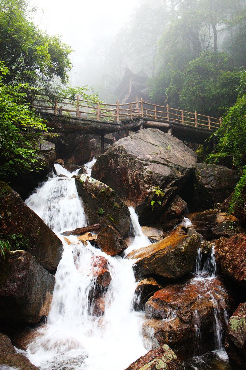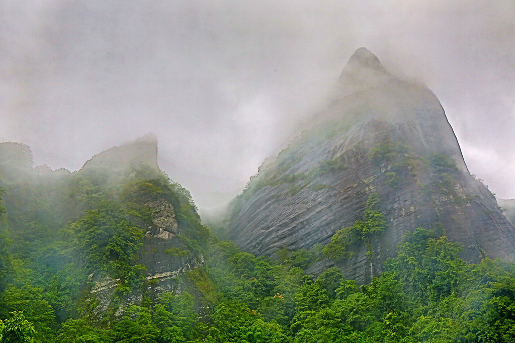 失望有多深,接下来的惊喜就有多高。在将军寨景区,起先也是雾气迷蒙,几乎什么也看不见,可是走着走着,雾气短时间消散,给我们欣赏了片刻的美景之后,就又关起了雾门。