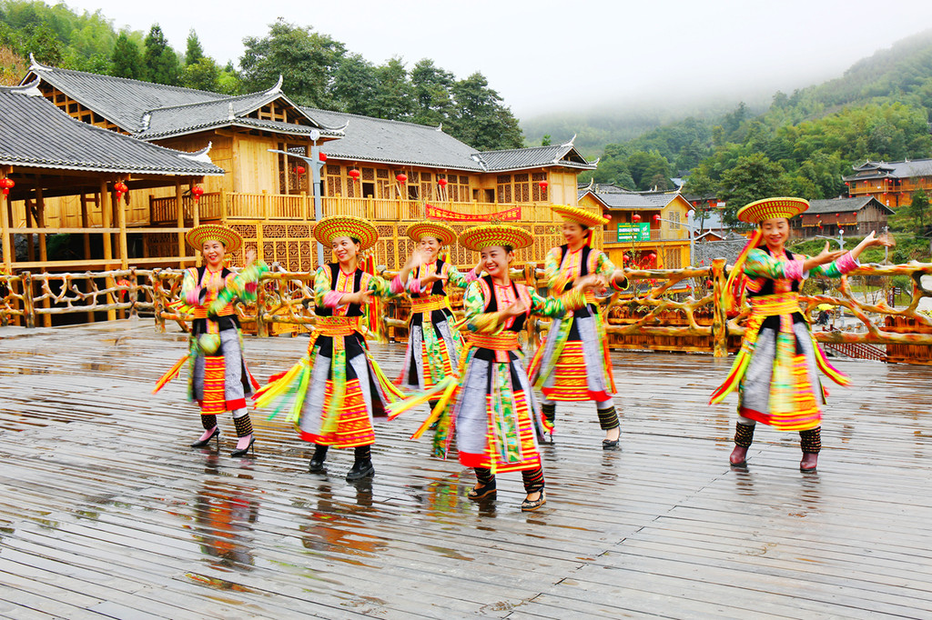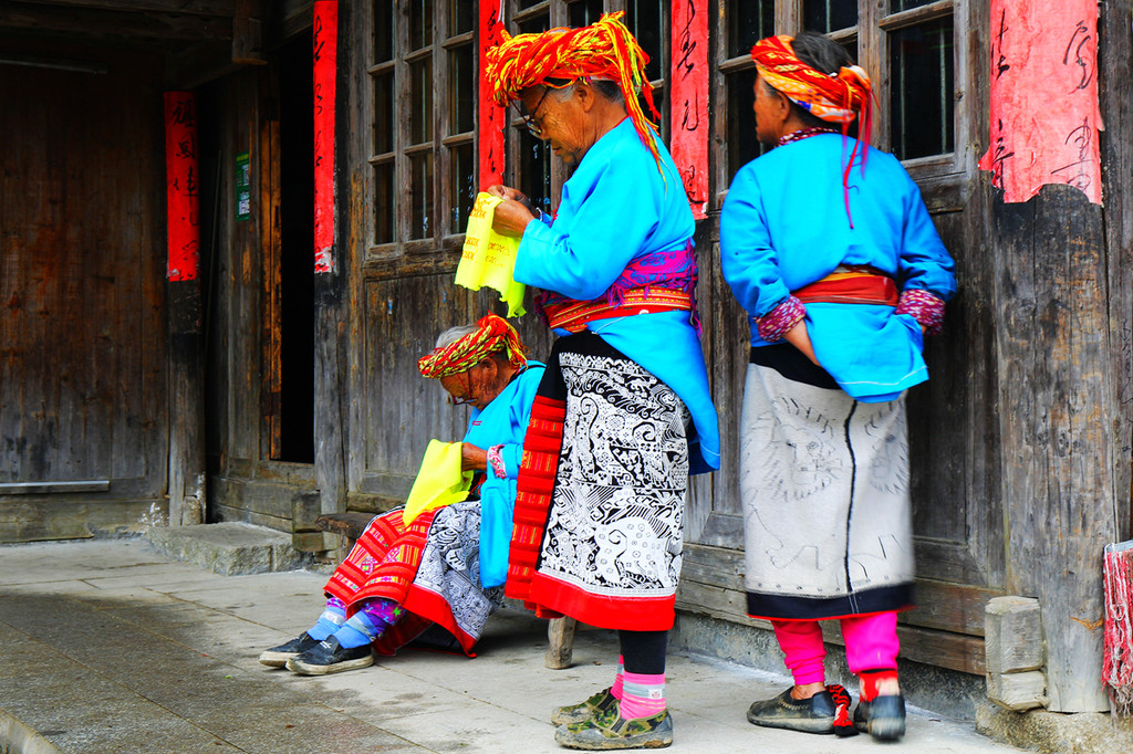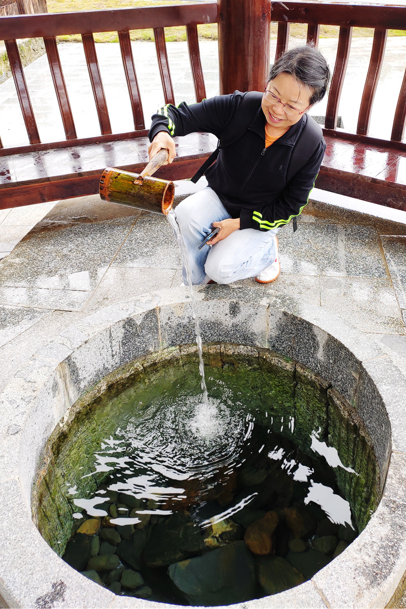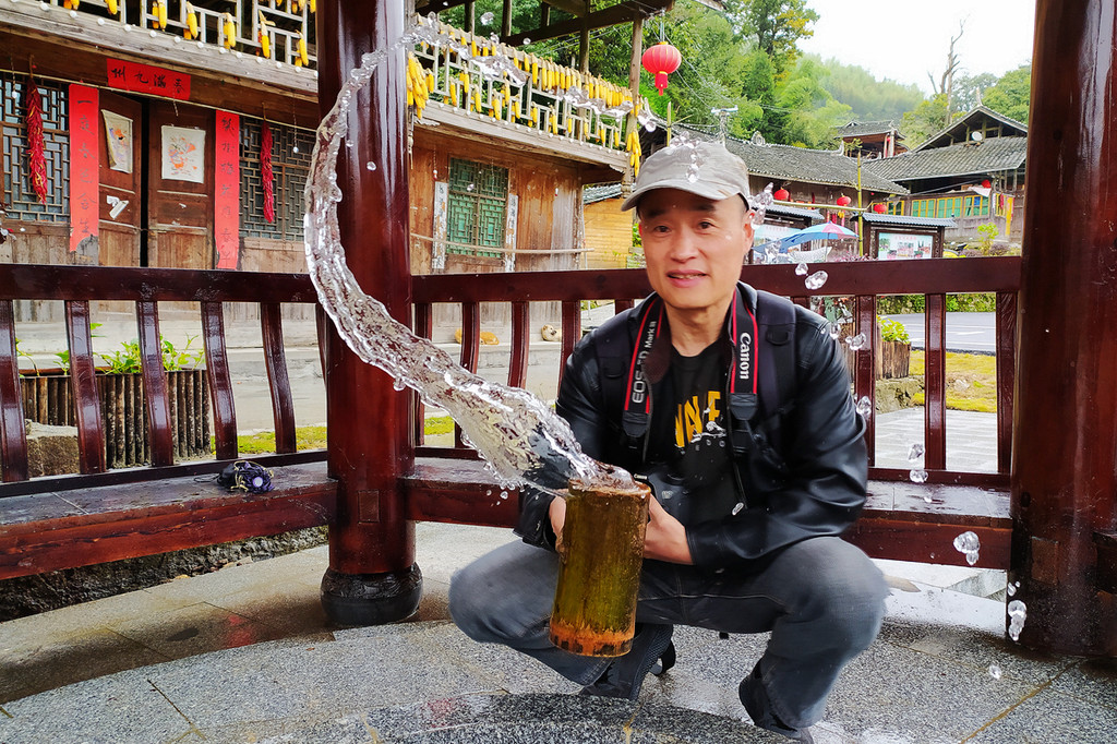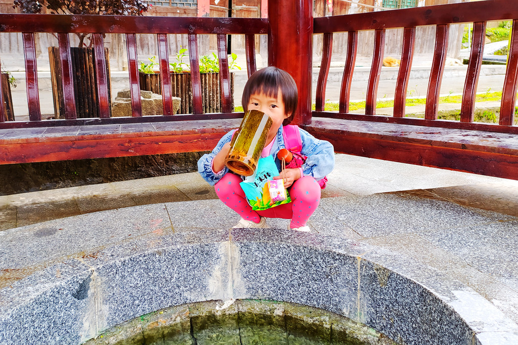 我们抵达古寨时,首先进入古村游览了一番,遇见几个身穿民族服饰的花瑶老人,赶紧合影留念,待步入村头,豁然开朗,恰逢有花瑶姑娘正在广场跳舞,又是合影拍照,然后走入地头,来到瑶泉,这里的水可以直接饮用,但我们却拿起水斗,舀水嬉戏,被一旁的小学生教育,并亲自示范了喝水的动作。