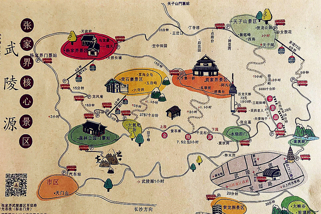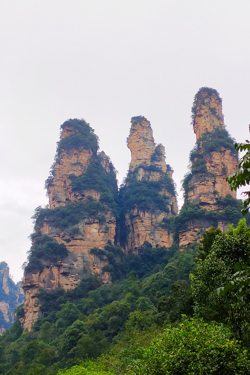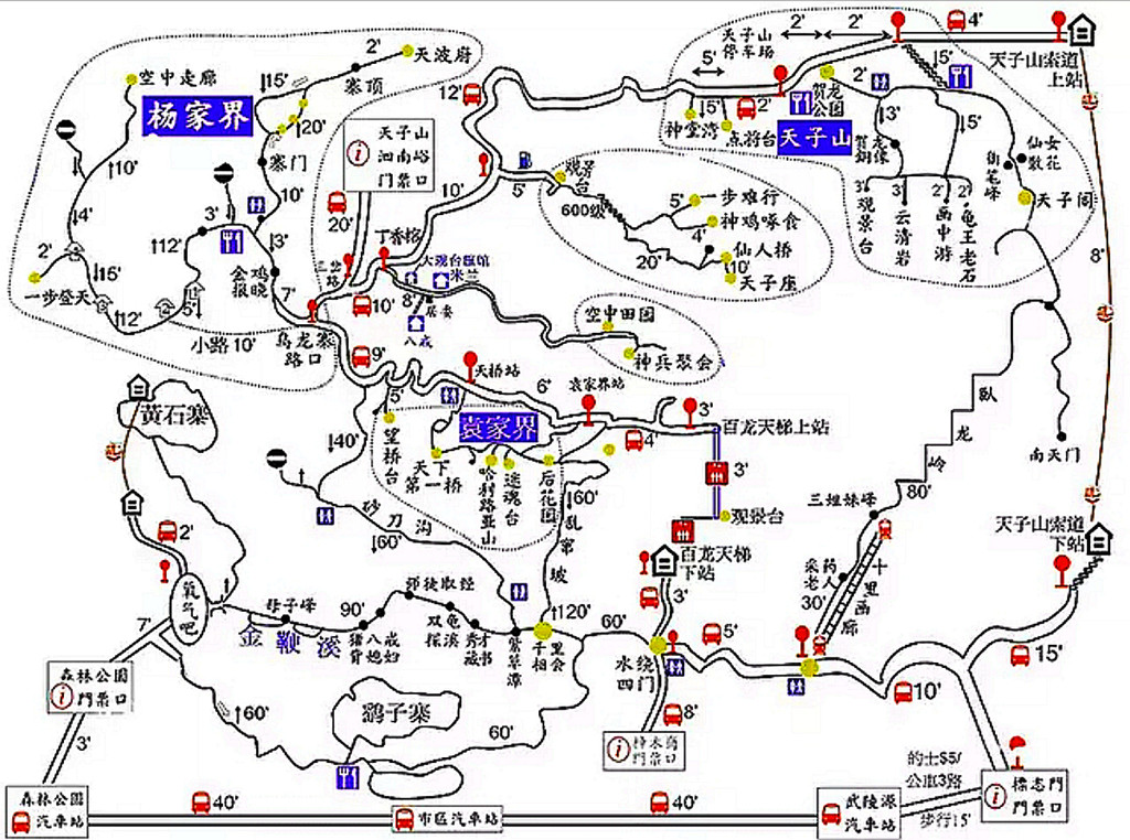 张家界的门票可以在里面游玩4天,景区主要分为山下及山上两大部分,想要不走回头路,颇费了一些心事,最后我们制定了从森林公园门票站进出的游览线路,好处是可以在山上看两个完整的日出及日落,当然这只是个美好的愿望,后面的行程12天有11天下雨,最后连一个日出及日落都没有看到。
