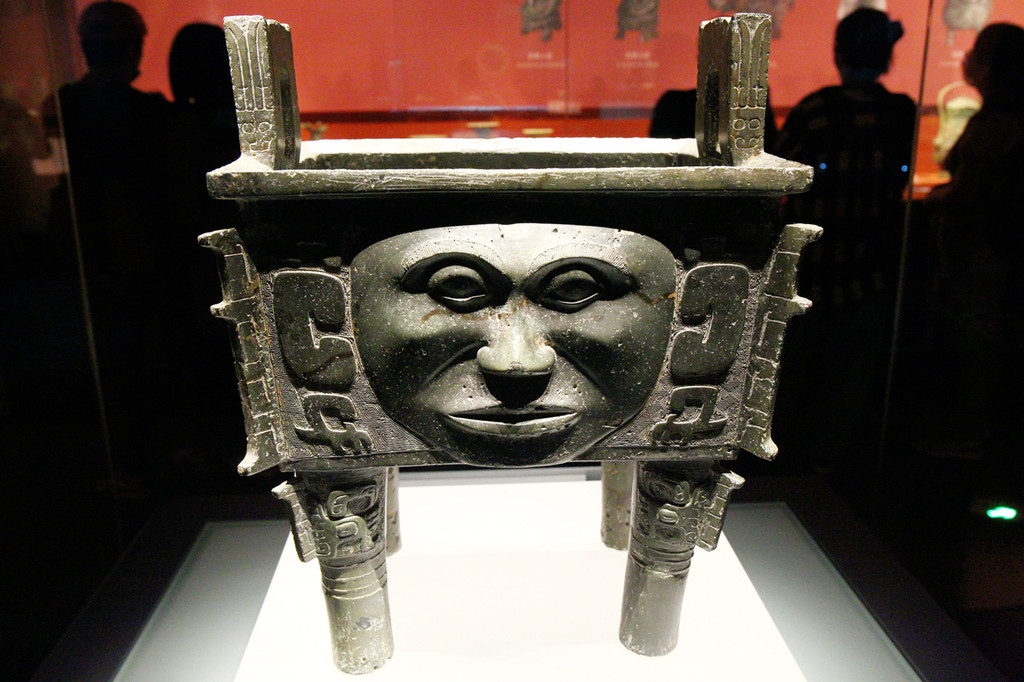 大禾人面纹方鼎,商代晚期文物,1959年左右在湖南省宁乡县,一位农民在挖地时发现了这件人面方鼎, 但并没有引起他的注意,不久后将其卖给了收废品的人。幸运的是,这件器物的残片被湖南省博物馆派驻到废铜仓库挑选文物的师傅发现了,后经追踪,找到了10多块残片。