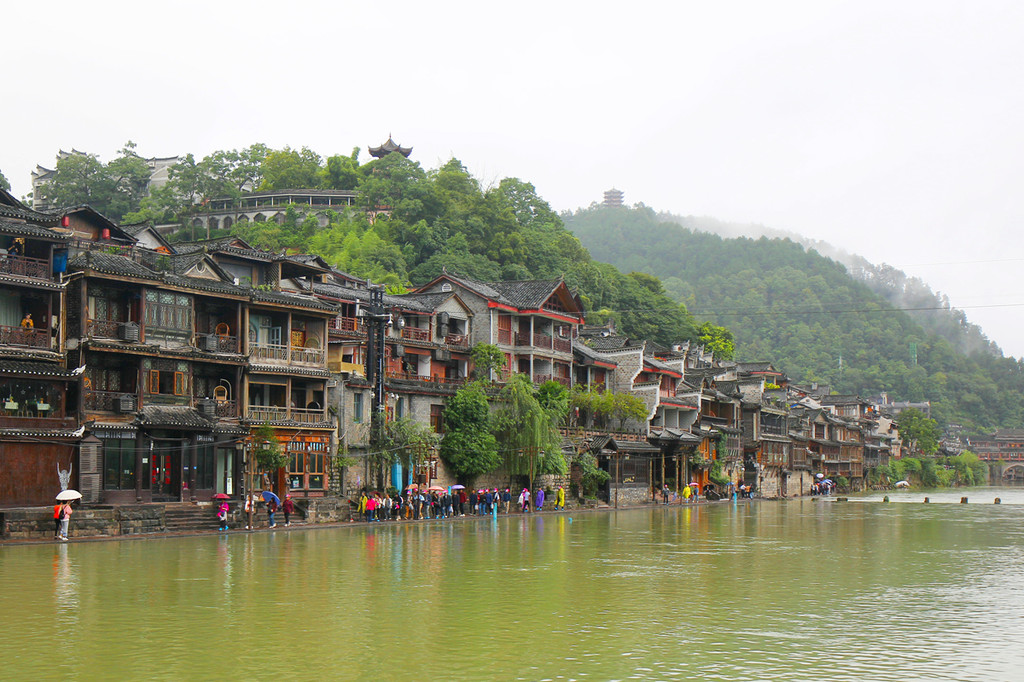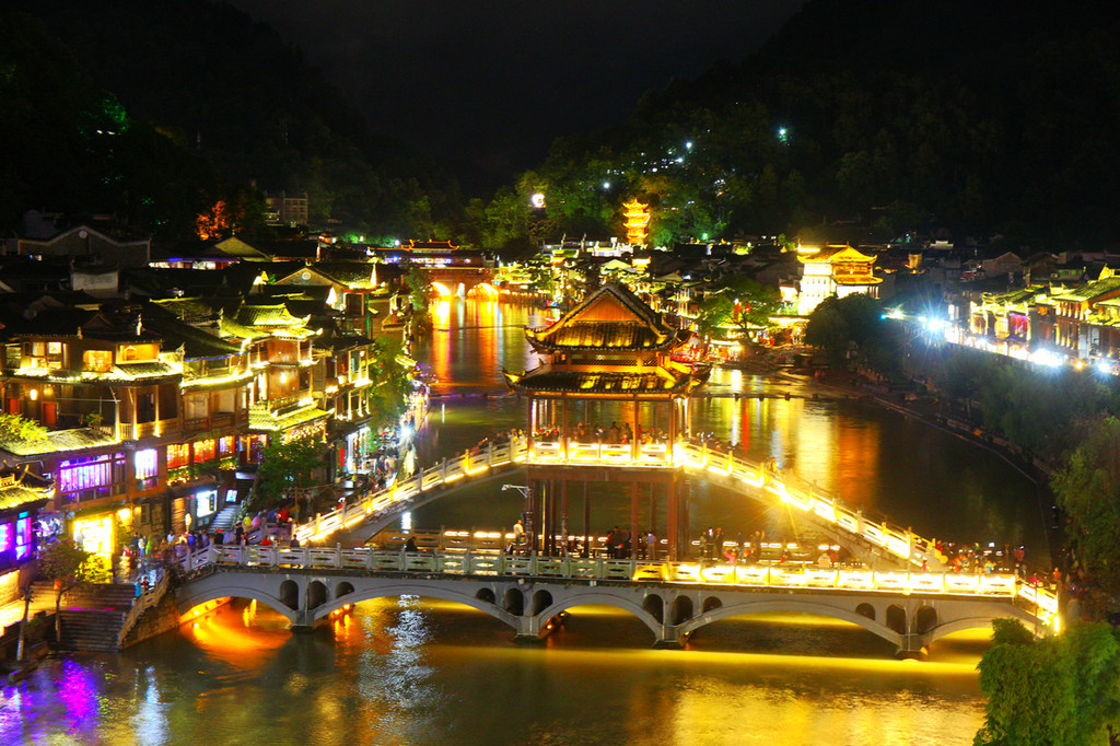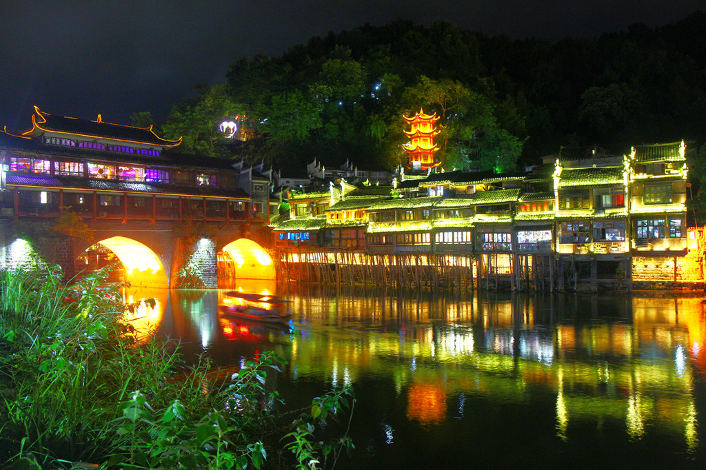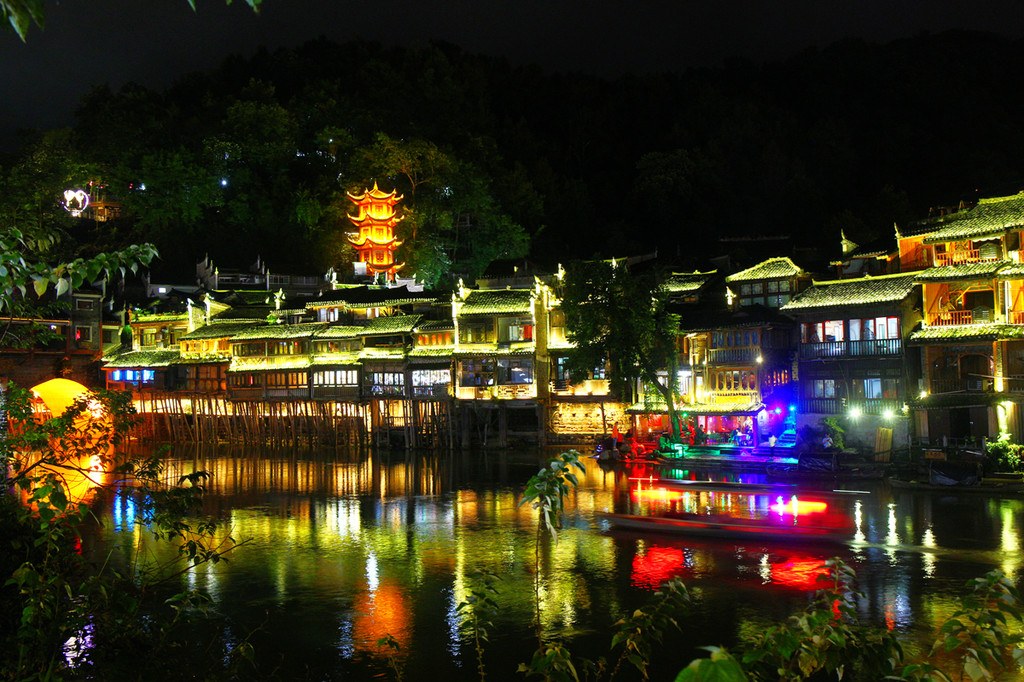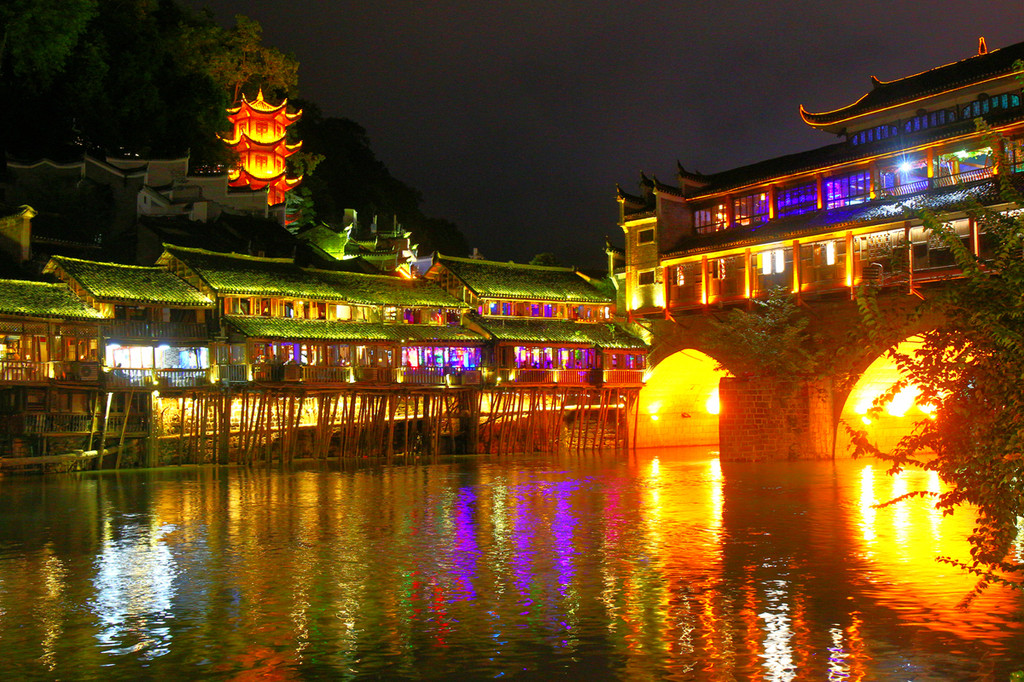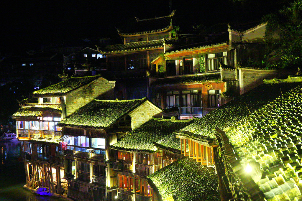 凤凰的夜景天下闻名,为了专心拍摄,我们几人分头行动,各取所需。走在江岸上,脚边就是滔滔的江水,岸边灯红酒绿,酒吧里声音震耳欲聋,不时有人招呼说:“50块钱12瓶啤酒,不限时间”,真是诱惑满满。