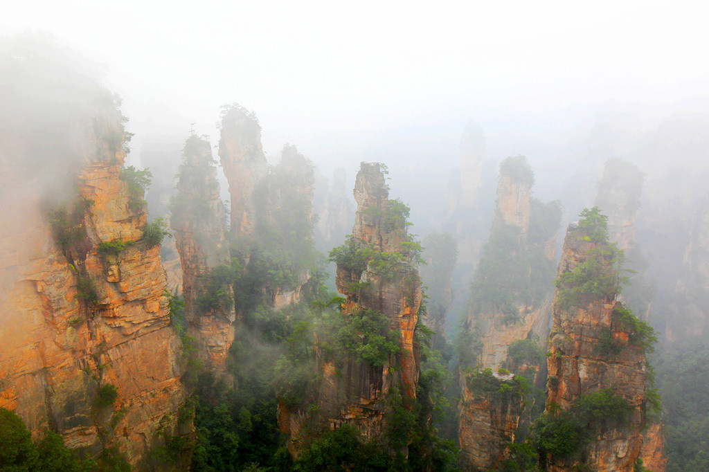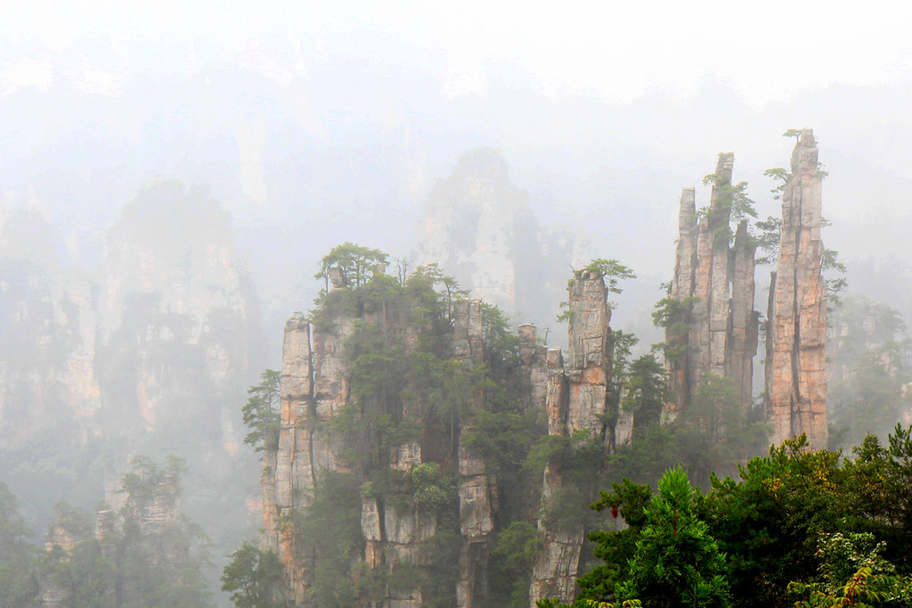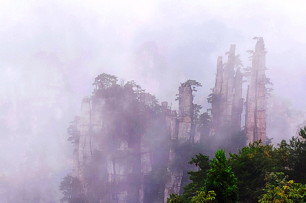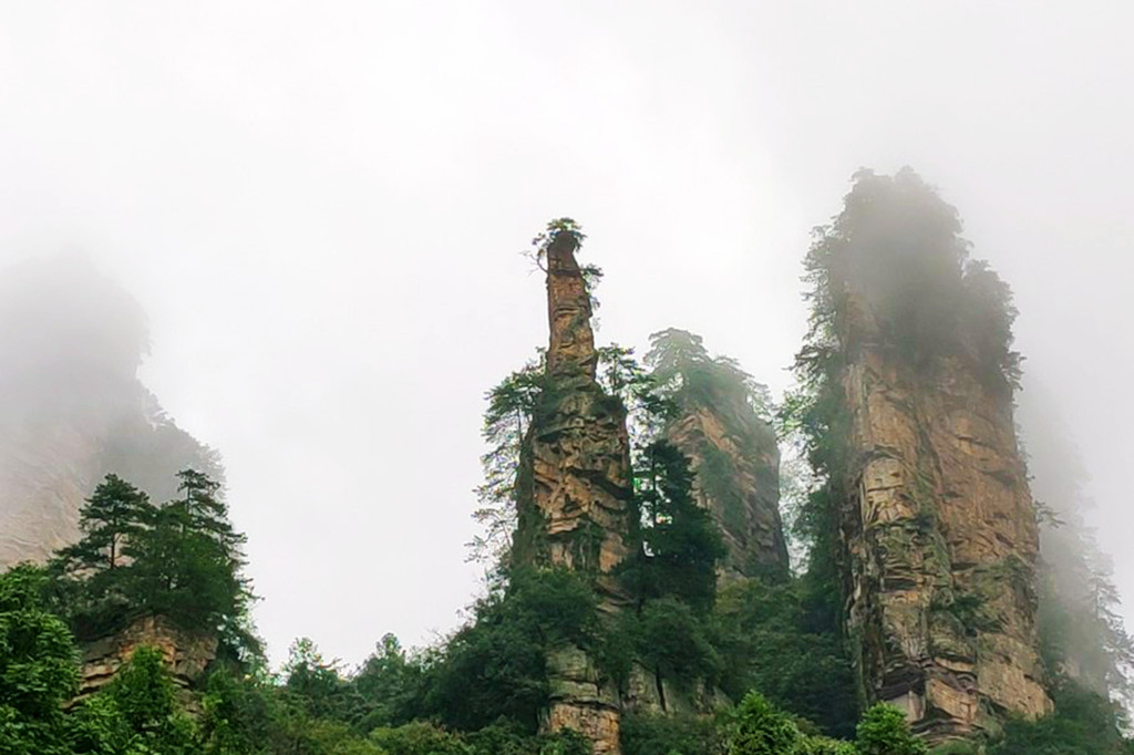 神堂湾、点将台、大观台等处因为雾气太大,我们没有下车,直接去了袁家界。