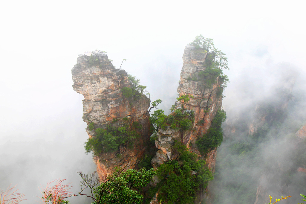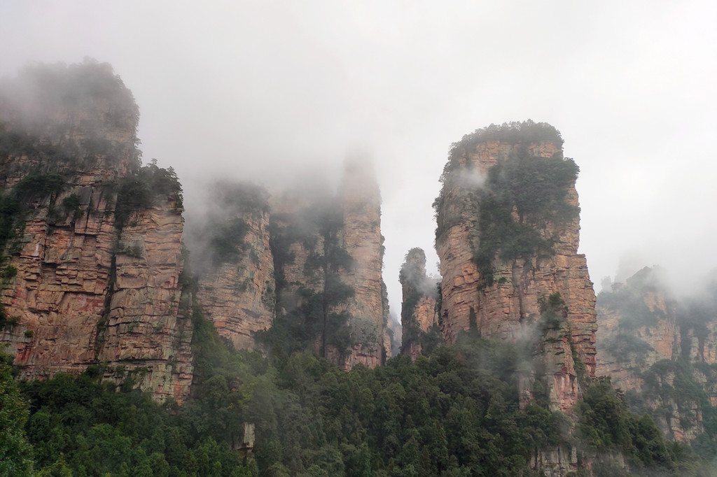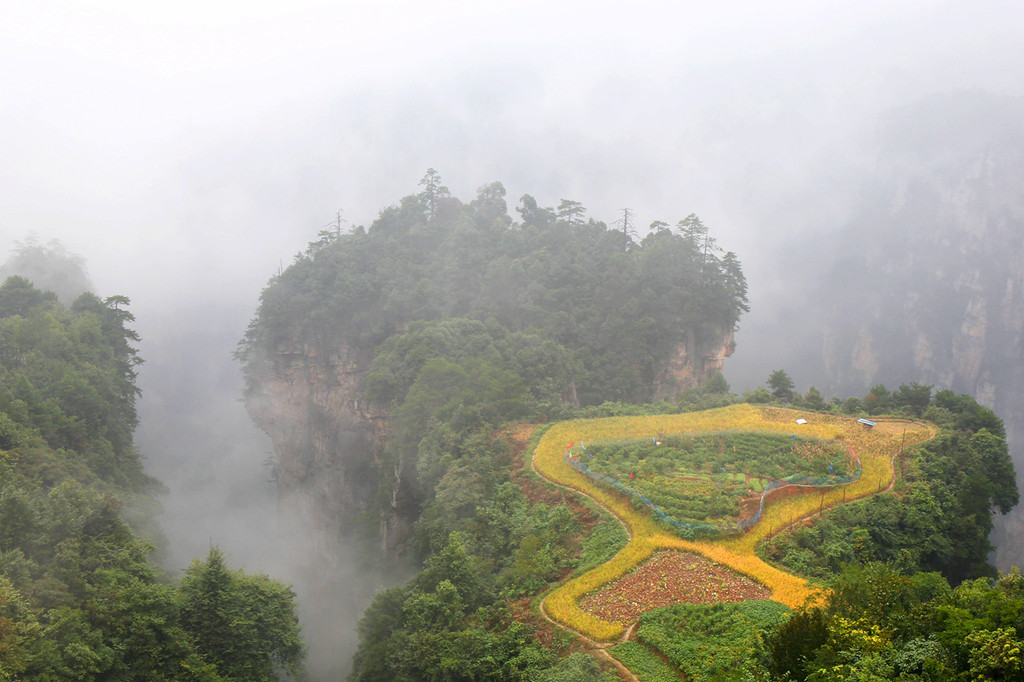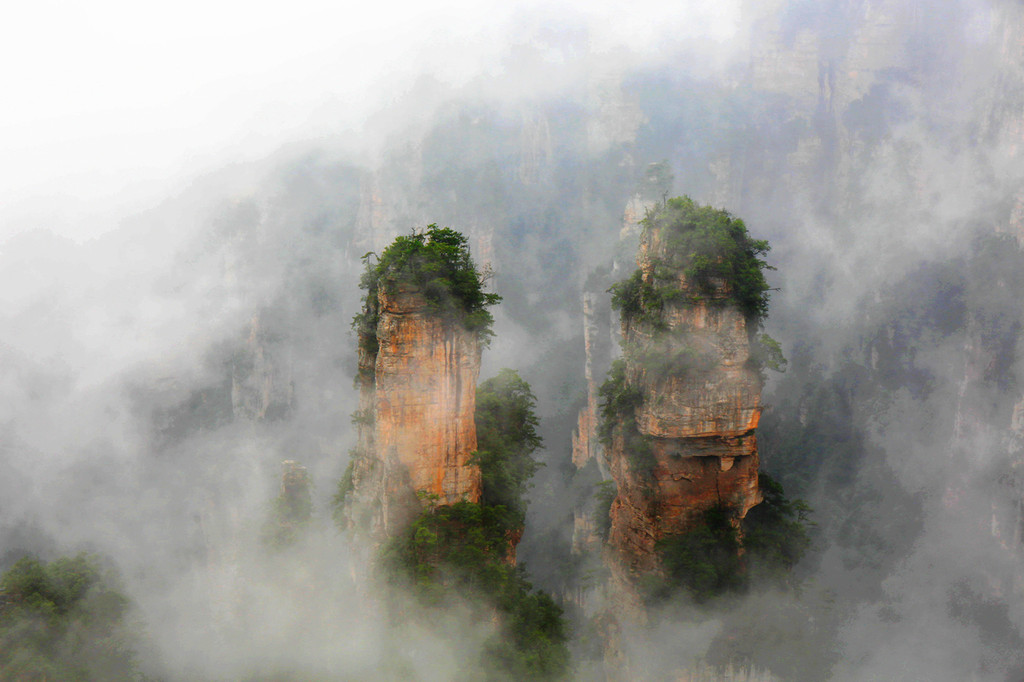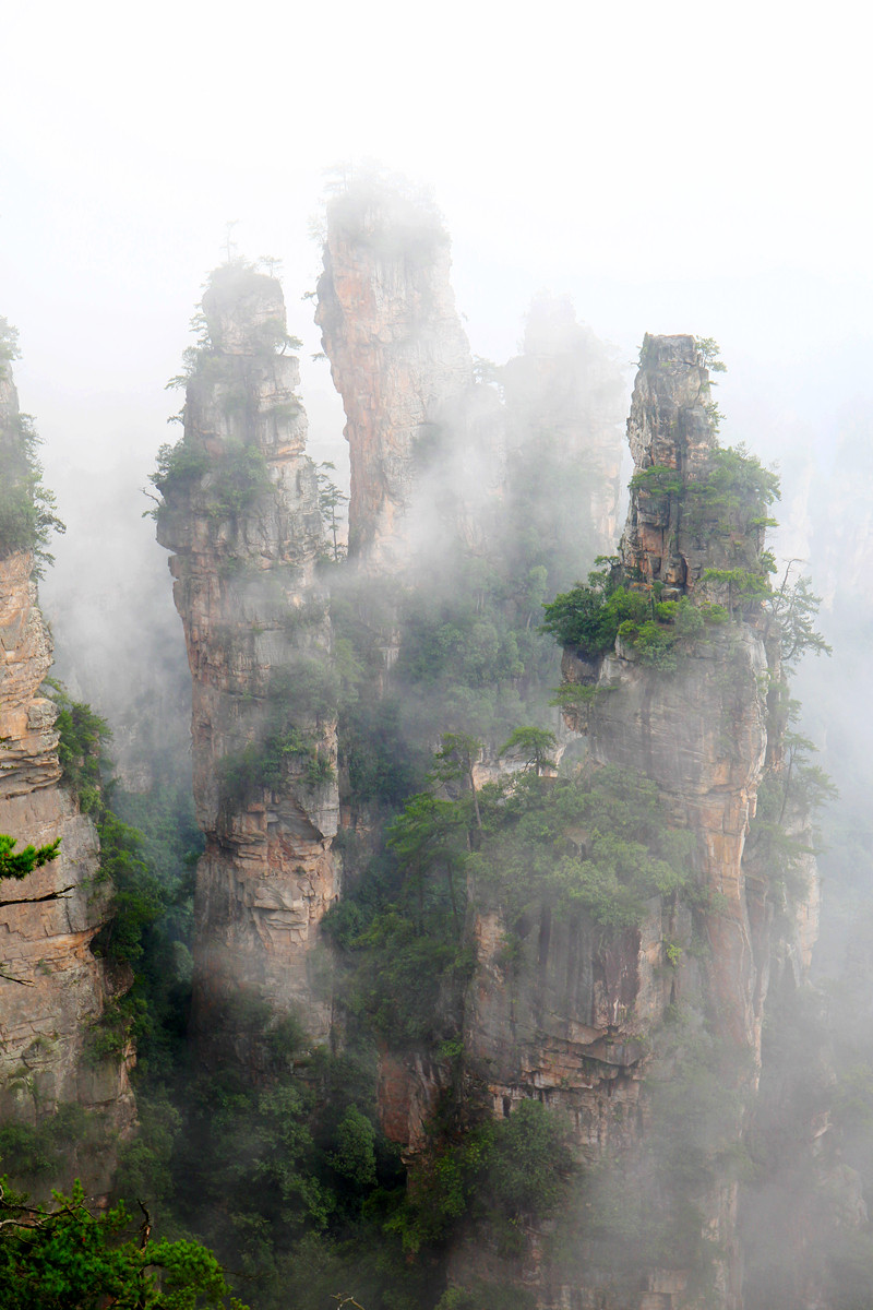 神堂湾、点将台、大观台等处因为雾气太大,我们没有下车,直接去了袁家界。