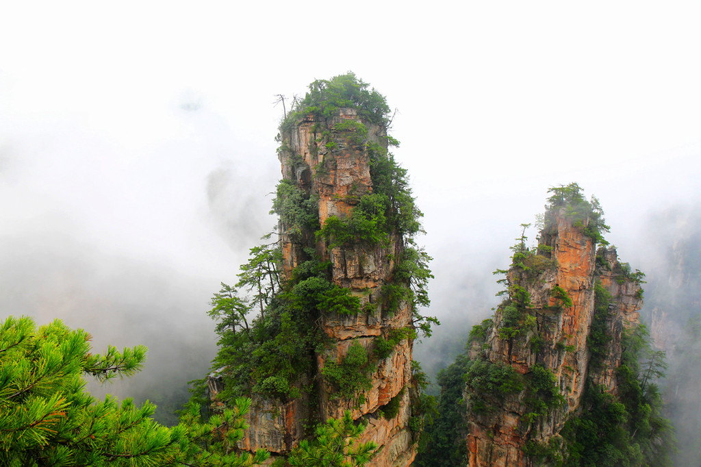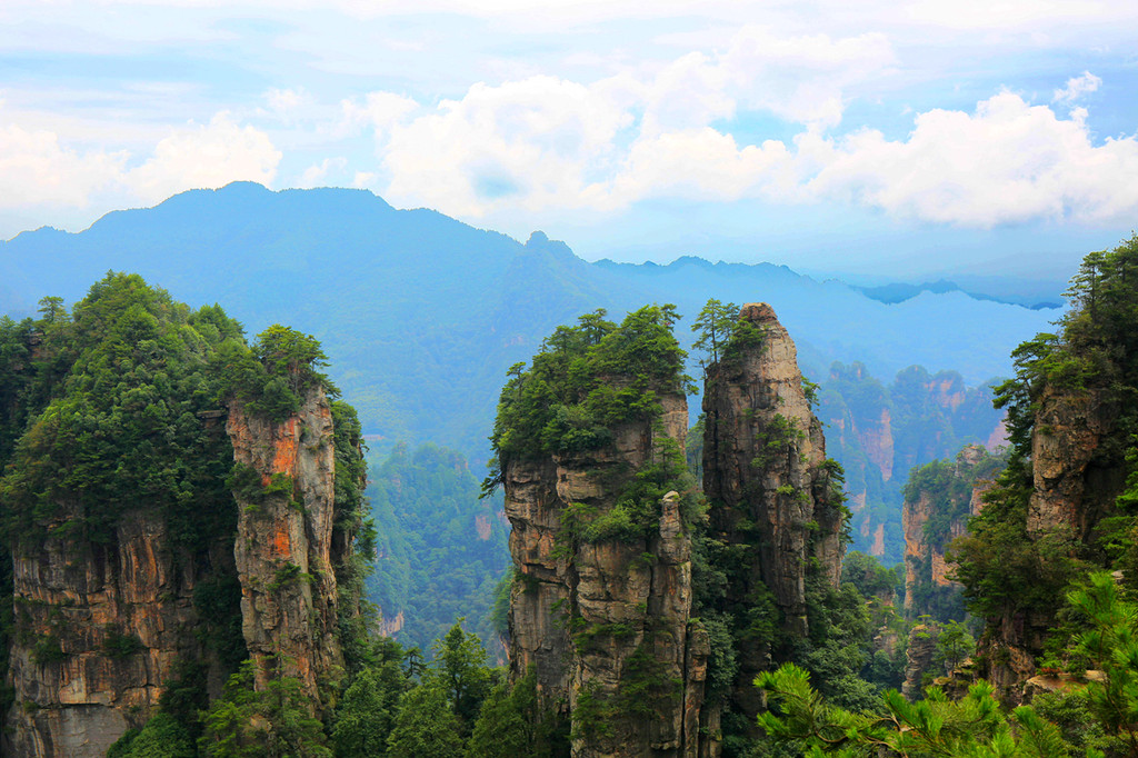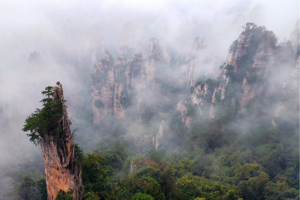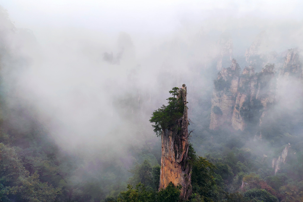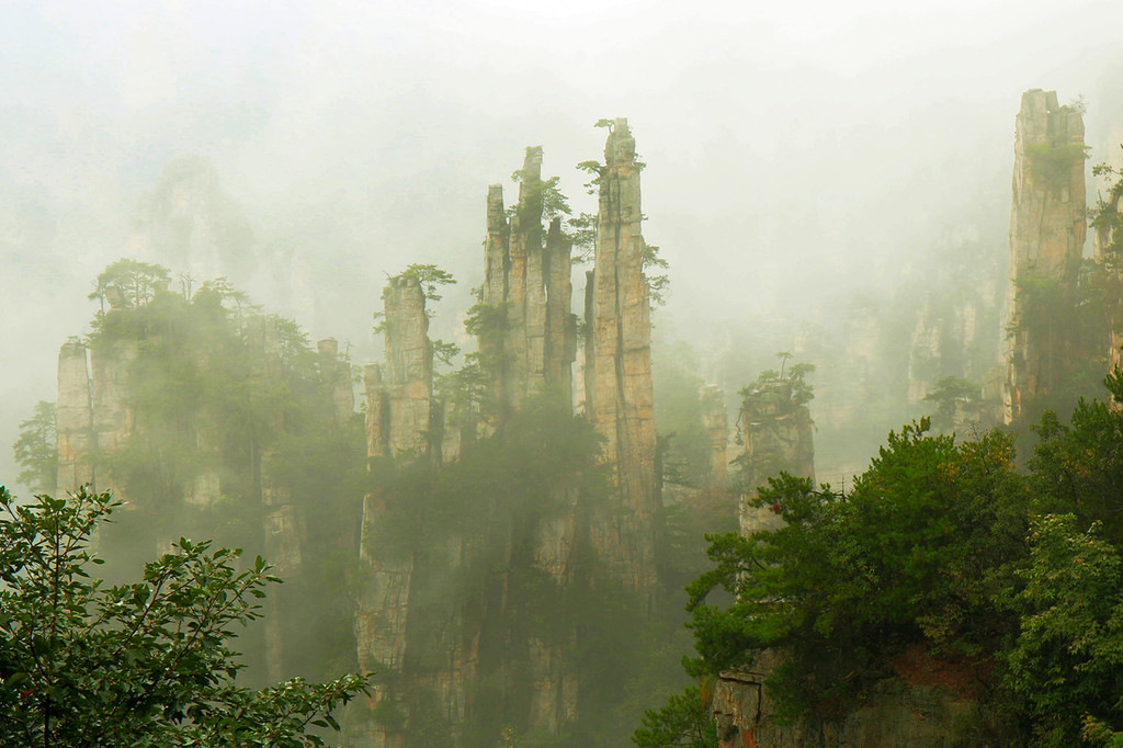 袁家界位于张家界的中心地带,据说天气好的时候,可以看见张家界三千奇峰耸立四周,随着电影《阿凡达》的全球热映,以这里的乾坤柱为蓝本的哈利路亚山,立即让张家界享誉全球。