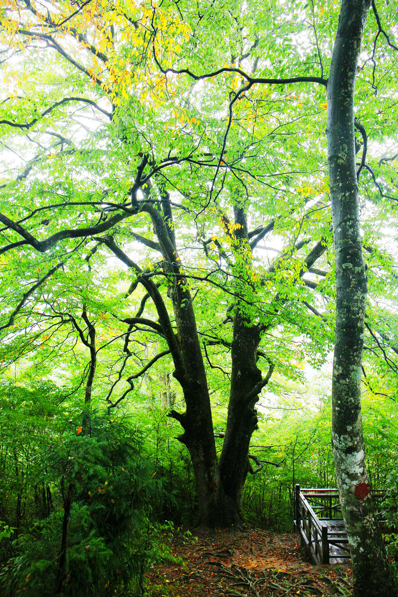 花瑶人热爱大自然,保护大自然,树木被他们赋予了神性,对山上的一草一木禁止砍伐,甚至严禁拣拾山上的枯木回家烧火,这些在山坡下清代树立的禁山碑上都有明确要求,所以这里的古木参天。