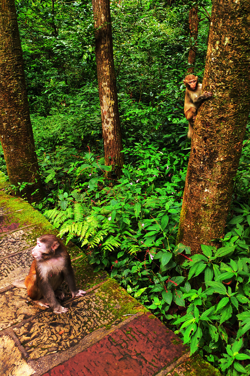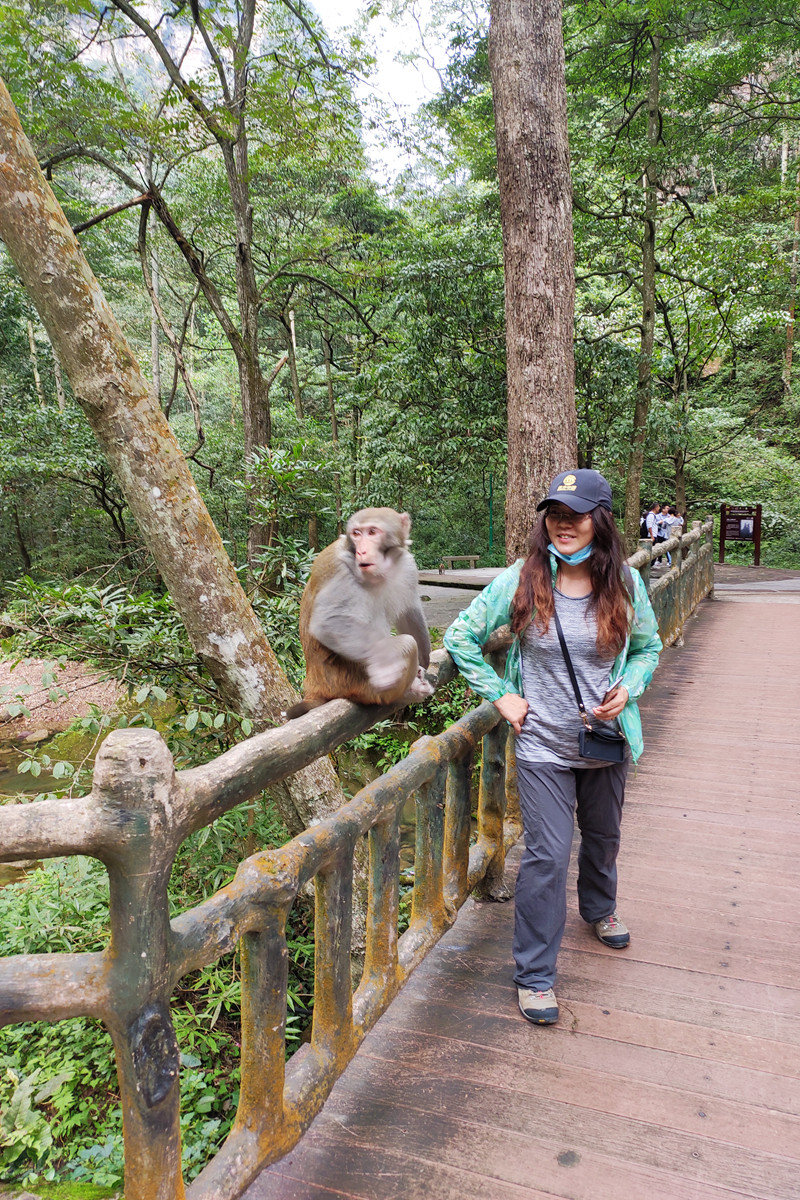 说金鞭溪野猴子刁蛮,才步入金鞭溪就领略到了,老婆被野猴子挠了,还好没有破皮,同行的闲人被野猴子追打,只有我对付猴子采取不卑不亢的态度,坚壁清野的方式,才能独善其身。