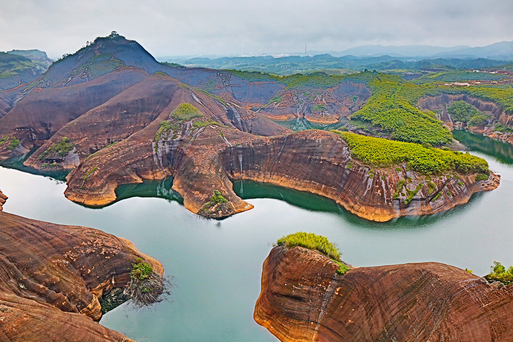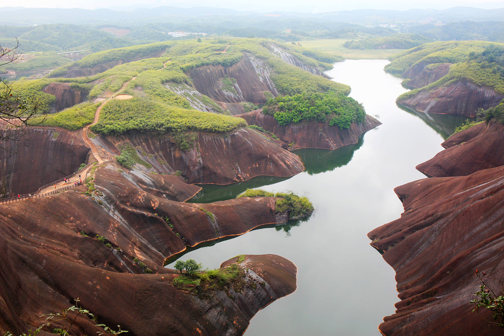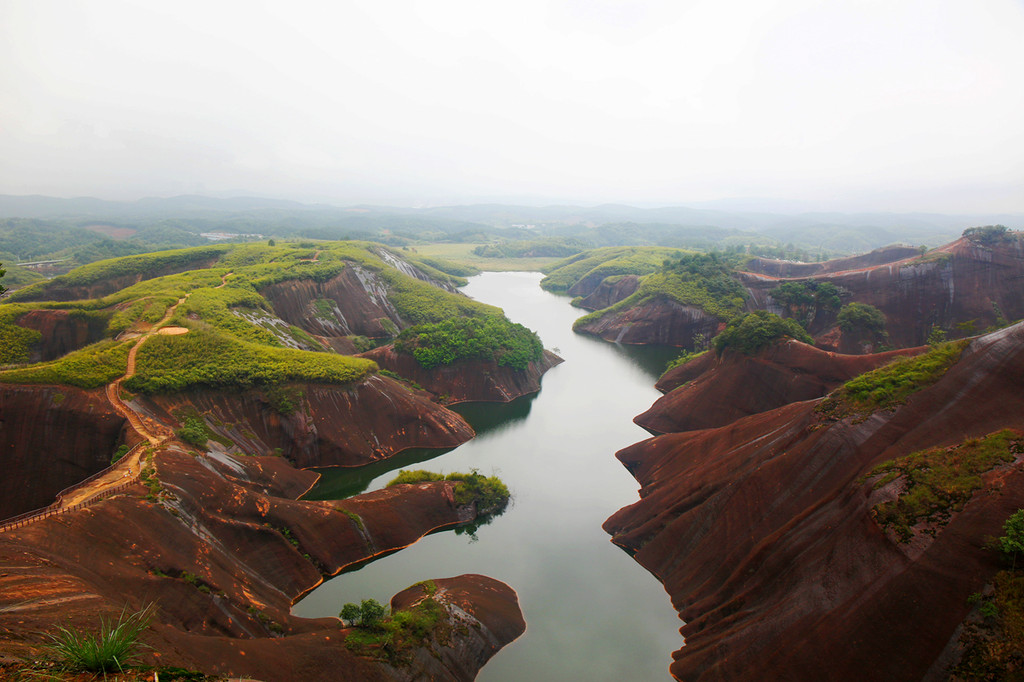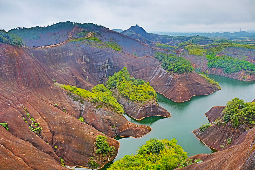 高椅岭是在短视频网站上非常火的一处免费景点,这里山、水、泉、洞、寨、崖、坦俱全,是一块尚未开发的丹霞地貌处女地,其最大的特点就是丹霞地貌周边有漂亮的水洼点缀,红岩绿水、险寨奇涧,生态自然,美得一塌糊涂。