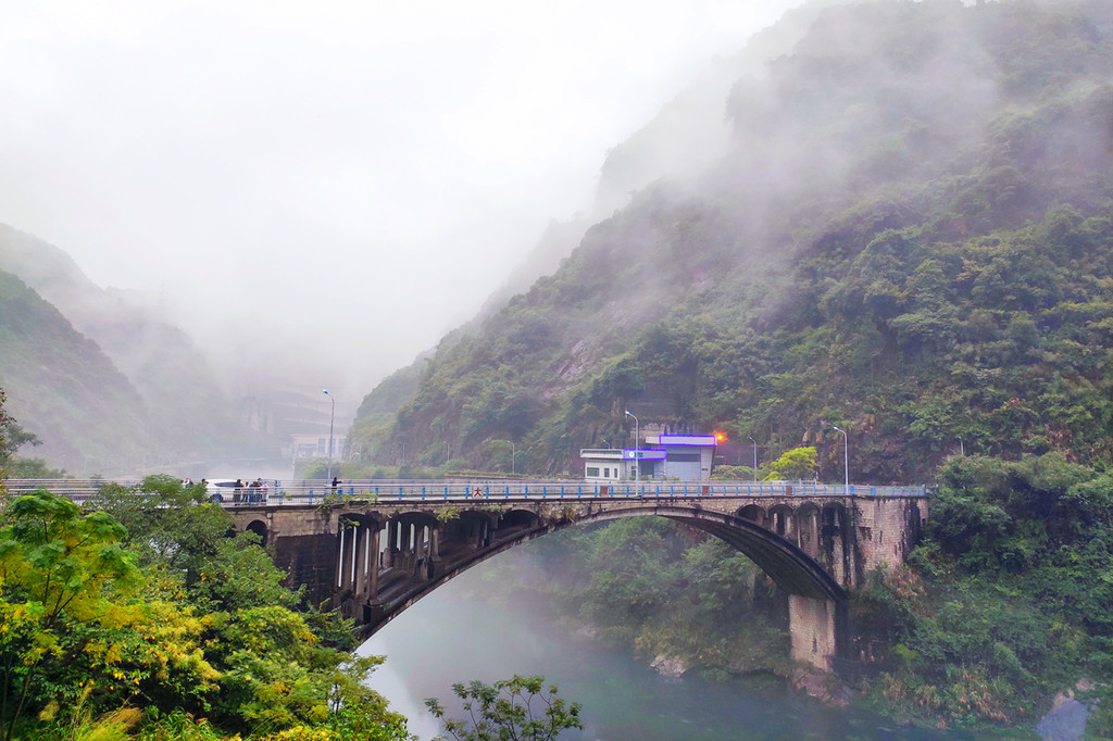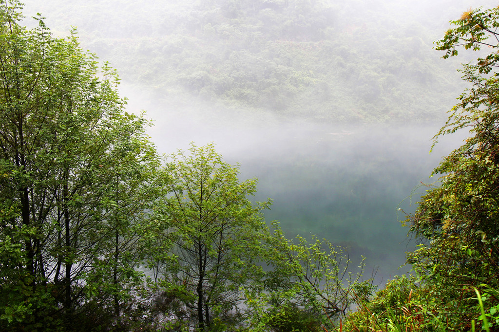 从2号桥下到观雾栈道后,立即被眼前的美景震撼了。江面上雾气飘飘,不远处群山也云雾缭绕,好一处人间仙境。