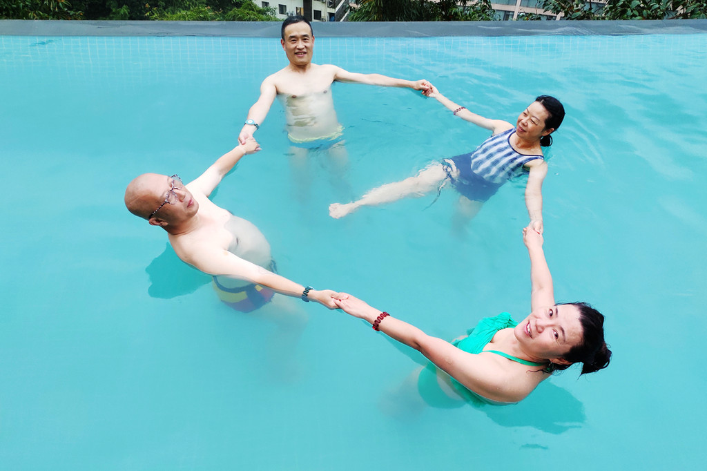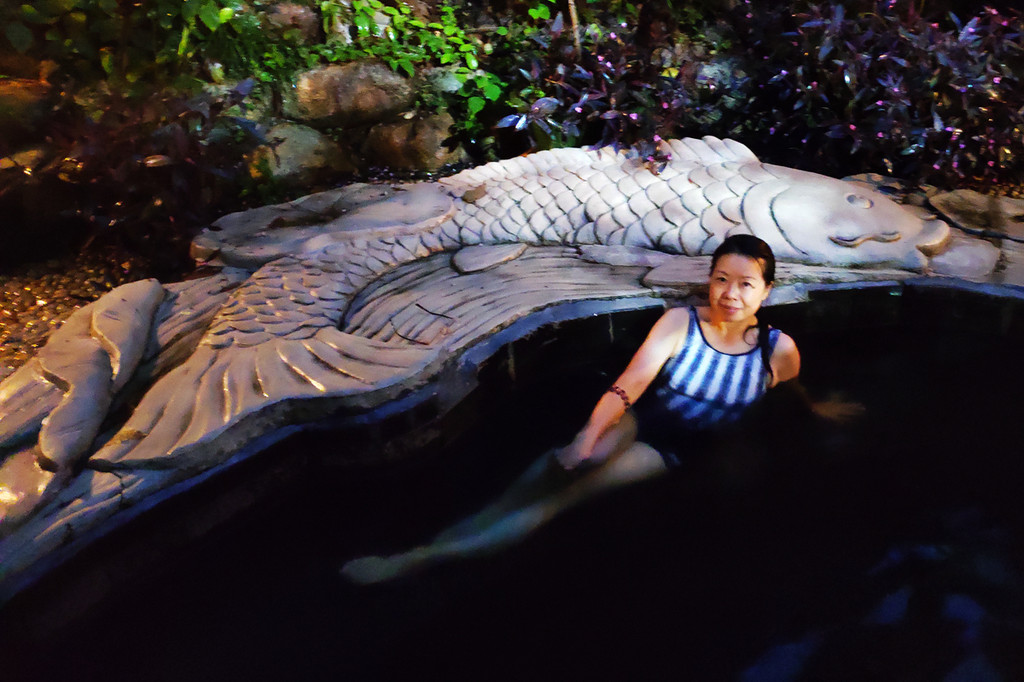 游泳、戏水、泡温泉,玩累了,就去吃一些免费的水果,喝一些免费的饮料,再去接着泡。