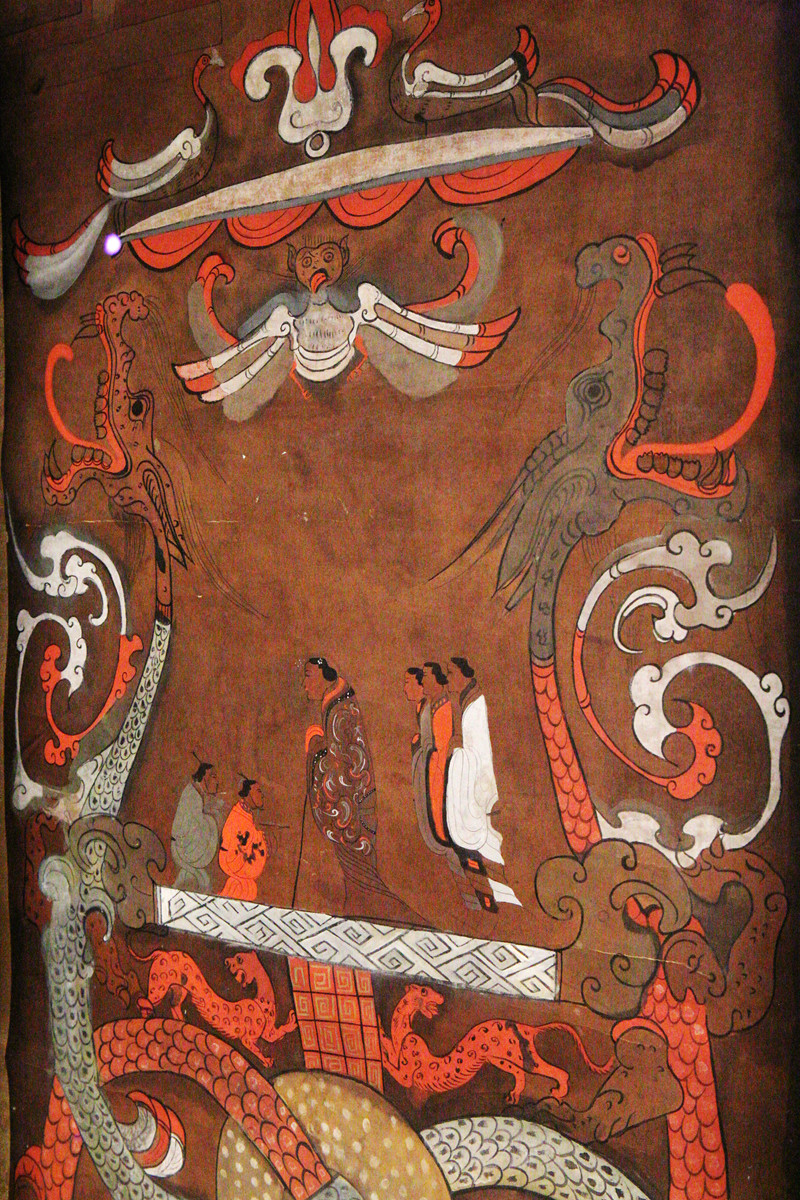 下层绘一弯月状物或以为是引魂升天的独木舟。绘画以白描为主,间以单色平涂,其线条流畅舒展,形象勾勒兼备,尤其是龙和凤一张一弛的鲜明对比,具有很强的艺术表现力。该画是中国现存最古老的帛画。