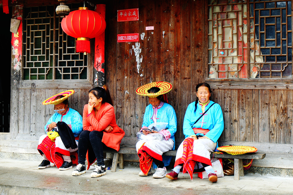 古村内老人悠闲自得,没有其它古村里的颓废凄凉景象,围在一起打牌娱乐,安享天年。