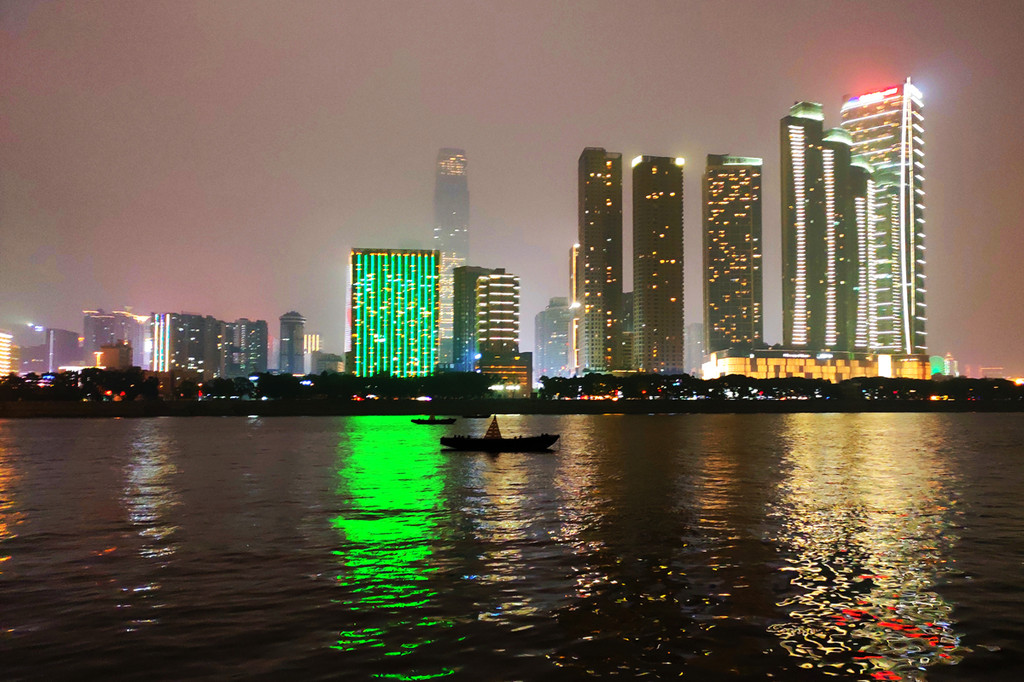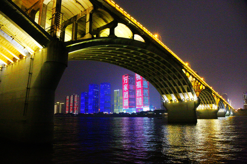 饭后我们前往长沙南站还车,还完车乘坐地铁前往橘子洲景区,打算夜观橘子洲。毛泽东青年雕像晚上10点关灯,我们赶到时已经晚上9:30左右,环保车已经停运,显然已经来不及,绕橘子洲走了一段路,拍摄了几张长沙夜景相片后就返回了酒店。