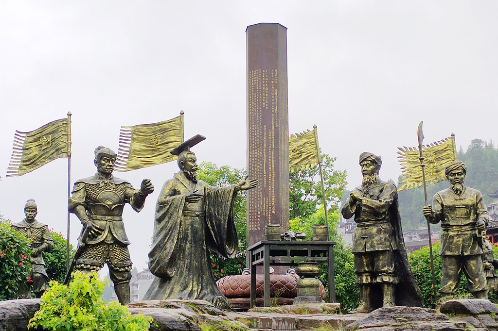 这里有见证历史的全国重点文物溪州铜柱,公元940年,楚王马希范与溪州刺使彭士愁多年交战媾和,缔结盟约,划疆而冶,铸5000斤铜柱为证。
