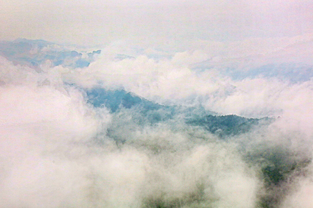 在往神兵聚会走的路上,雨时断时续,等我们来到观景台时,云开雾散,伸头一看,周围山峰仿佛漂浮在空中,云雾随着风吹来吹去,在山峰间飘渺游荡,仿佛人间仙境。
