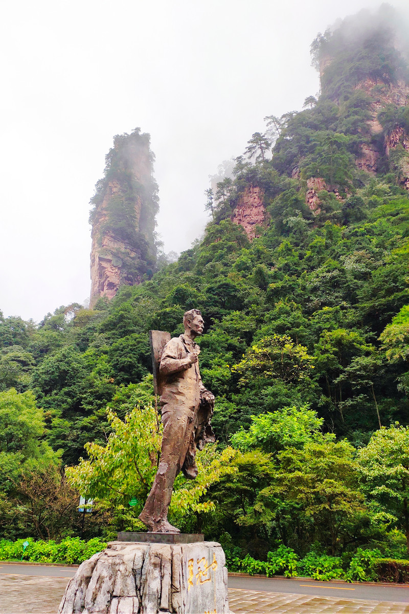 张家界的声名鹊起,首先要感谢的是著名画家吴冠中,上世纪70年代末,吴老到湖南写生,无意间发现了这处人间仙境,回来后在湖南日报发表了《养在深闺人未识——失落的风景明珠》这篇文章,将张家界推向了世人,所谓吃水不忘挖井人,张家界森林公园门口,如今赫然矗立着吴老当年的写生铜像。