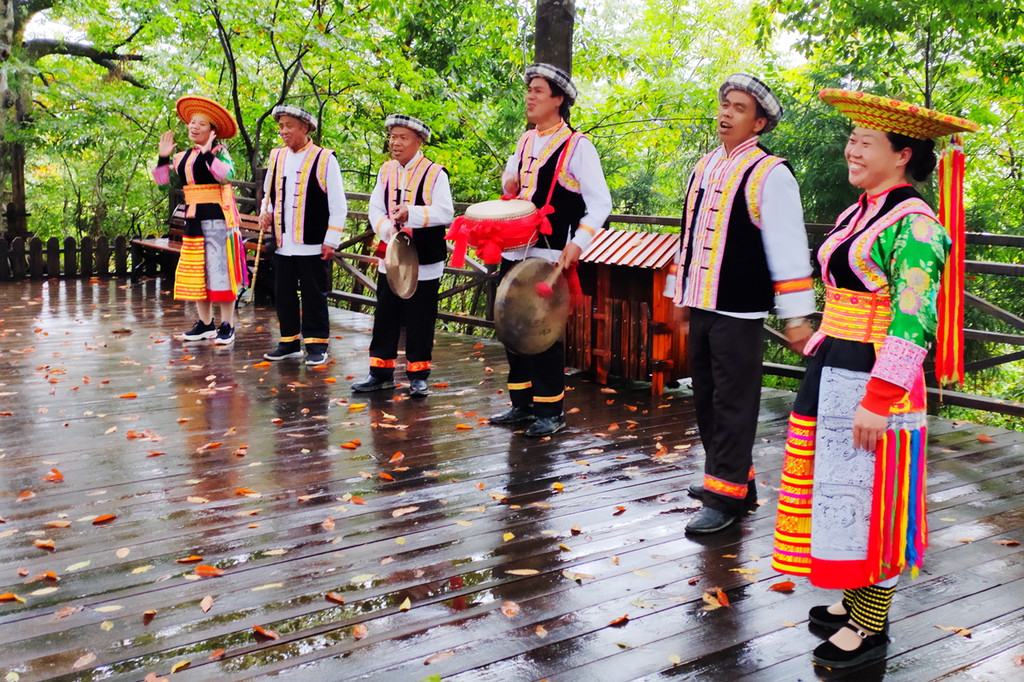 在崇木凼参观大树林时,有当地领导前来视察,村民唱起了劳作的歌谣。