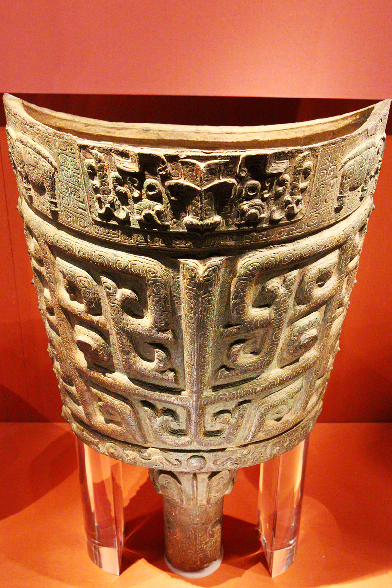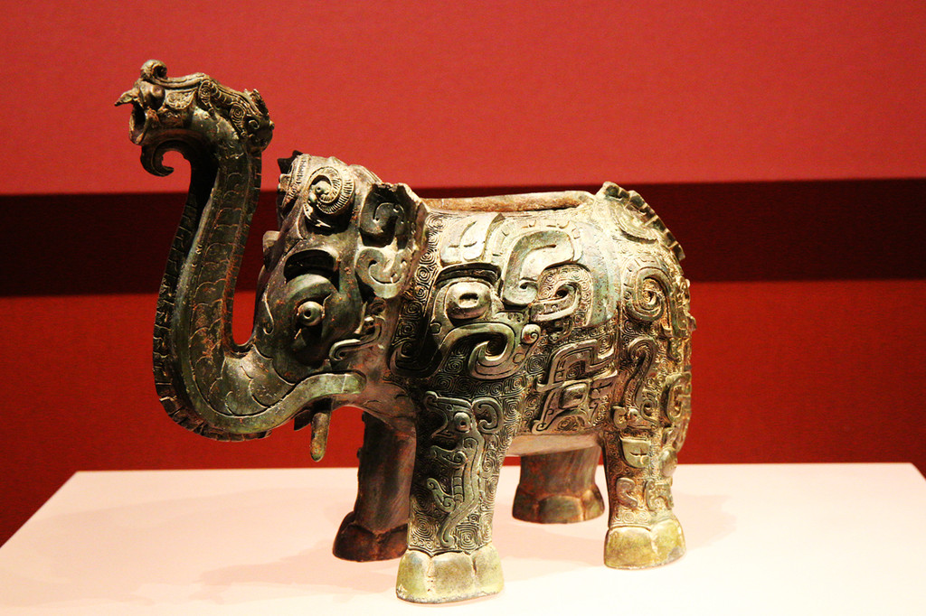 商代象纹铜铙,商代的打击乐器文物,出土于湖南省宁乡县老粮仓师古寨山顶。颜色土褐,外形酷似两片合起来的瓦块。使用时器柄向下,而发声的铙体则向上,演奏时敲击口部,敲击起来声音洪亮。