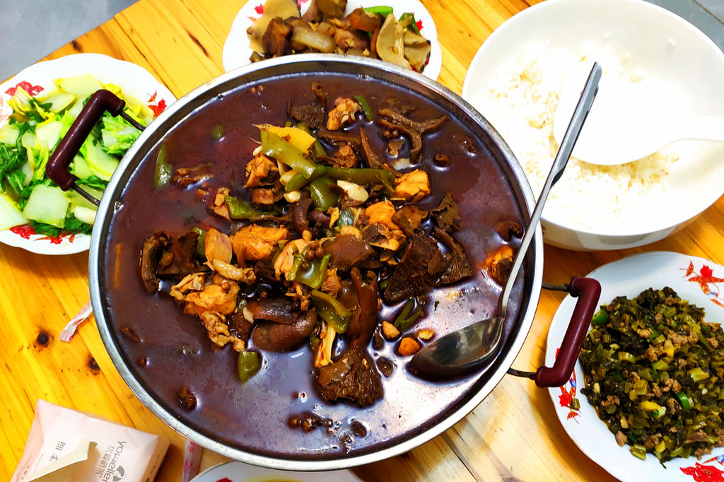 选择这家客栈,是因为老板答应免费送我们看日出及去老屋场景区,晚饭是老板娘亲自下厨烧的,我们洗洗漱漱好了以后,饭菜也搞好了。