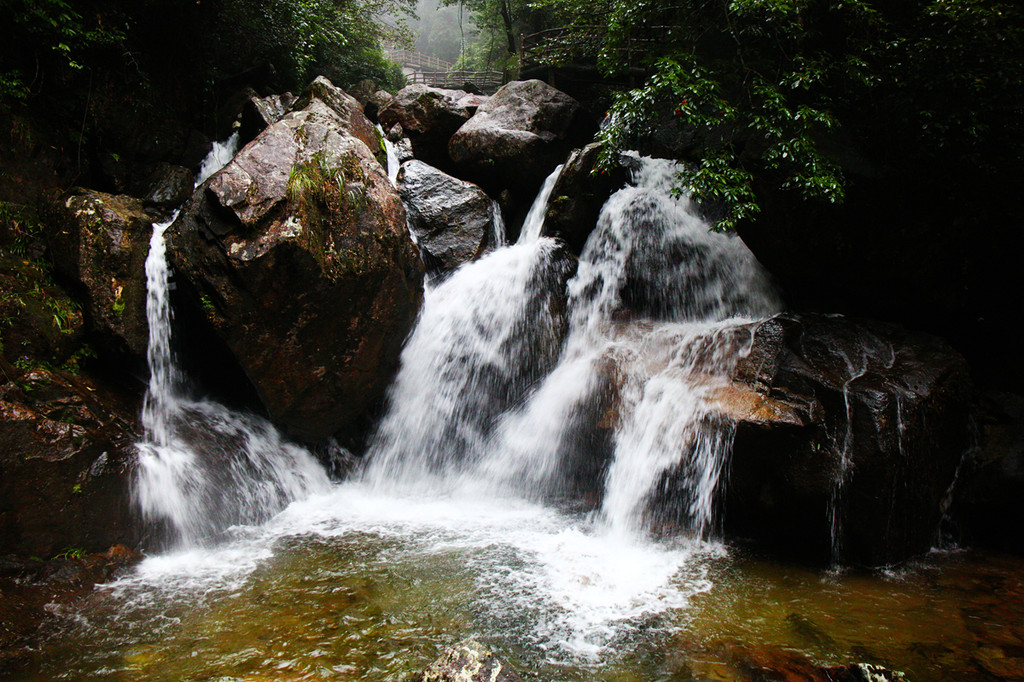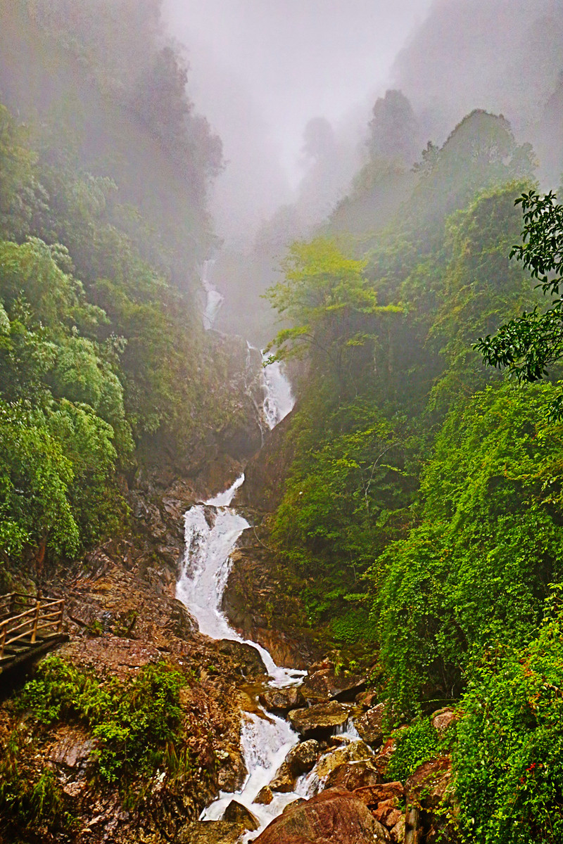 27日早晨,我们前往猴子寨景区,继续游玩。这里主要以瀑布景观为主,一路上瀑布声音震耳欲聋,水汽不时上身,可以想见水流之大,完全得益于连日阴雨的缘故。