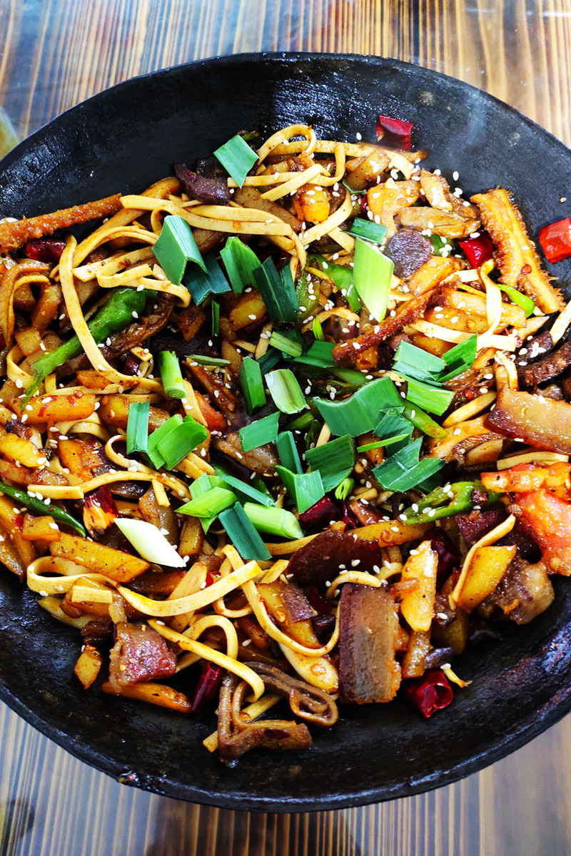 所谓三下锅,是将腊肉、豆腐、萝卜一锅炖,做成“合菜”,三下锅的名称其实与配料无关,其名称“三下”实则指土家族吃饭时的习俗“下跪”、“下锅”、“下筷”,即“三下”。如今张家界的三下锅不再是腊肉、豆腐、萝卜一锅煮,多为肥肠、猪肚、牛肚、羊肚、猪蹄或猪头肉等选其中二、三样或多样经过本地的土厨师特殊加工成一锅煮。类似我们这里的干锅烩菜。
