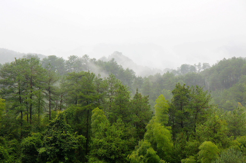 车子开的越高,山上雾气越重,有些路段能见度不足10米,心情那个忐忑失落呀。据说张家界有约60%的时间山头被雾气笼罩,游客来了什么也看不见。