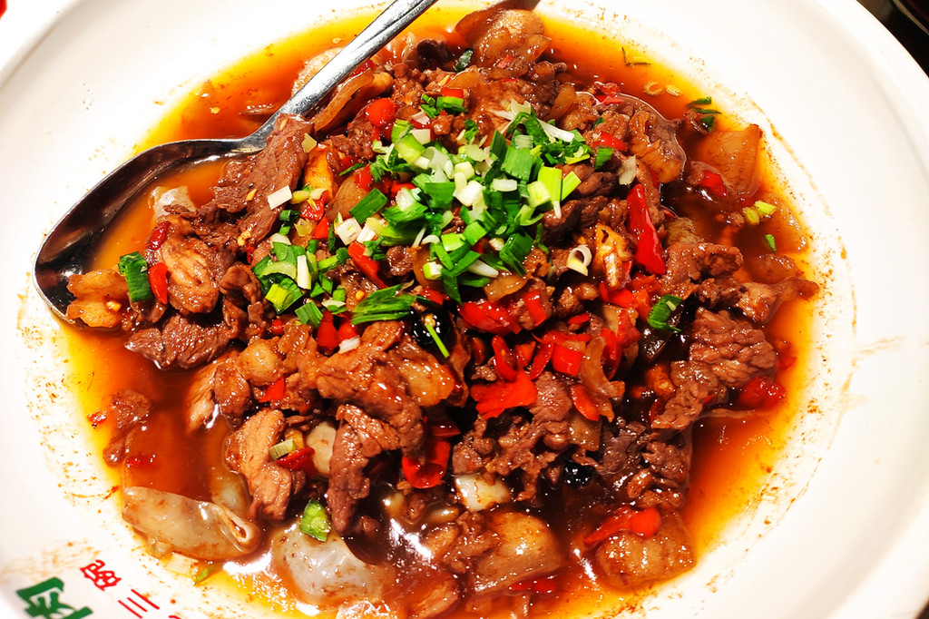 22日早晨,我们约定8点出发,起床后首先去街边店吃了碗牛肉面,然后前往沱江边。