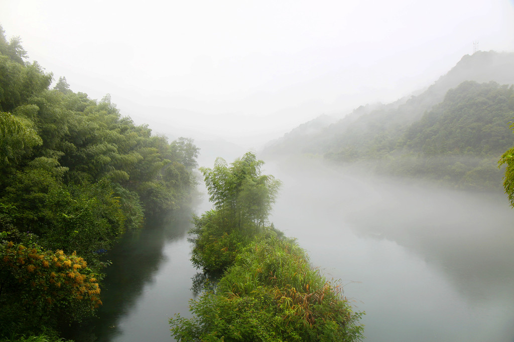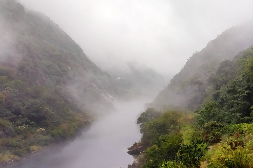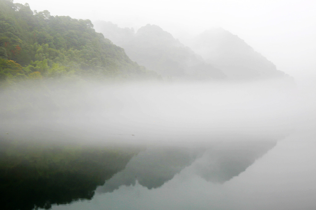 小东江因为雾气景观,这些年在摄影圈非常出名,每当清晨、傍晚,东江大坝底部放出的低温冷水,遇到周围较高的热空气时,就会在水面附近形成一层薄雾,形成了雾漫小东江这一独特的自然景观,每年的5~10月是欣赏这一奇观的最佳时间。