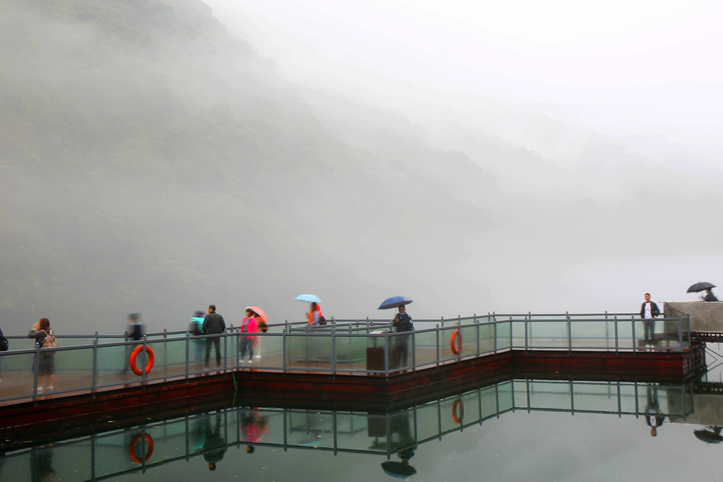 虽然周围大雾弥漫,但抱着一丝侥幸,我们还是决定先去大观台看看。
